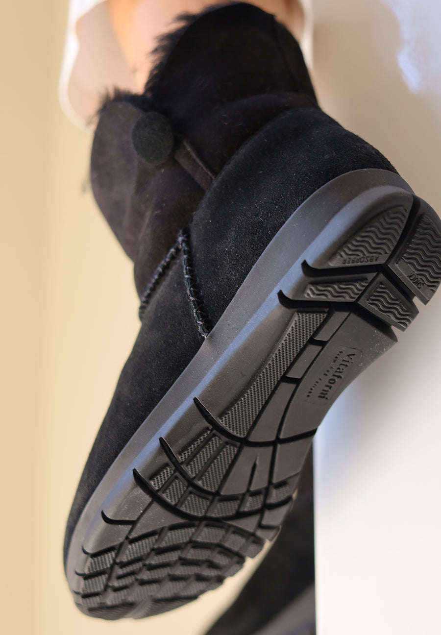 Es locken die klare Winterluft und eine verschneite Zauberlandschaft zum Spaziergang? Sie treffen sich zum Schlittschuhlaufen oder möchten an einem frostigen Abend noch kurz was einkaufen? Egal, was Sie vorhaben: Freuen Sie sich auf wohlig warme Füße! Ob in der Stadt oder Natur, in unserer kuscheligen Stiefelette laufen Sie so bequem wie gesund. Der VITAFORM Shock-Absorber dämpft jeden Schritt und im flauschigen Lammfellfußbett mit Luftpolster genießen Ihre Füße Halt und Komfort. Dezent verziert und in vier tollen Farbtönen erhältlich, werden die lässigen Boots aus doubleface Veloursleder – Lammfell innen, Leder außen – schnell zum Star in Ihrem Schuhschrank.
