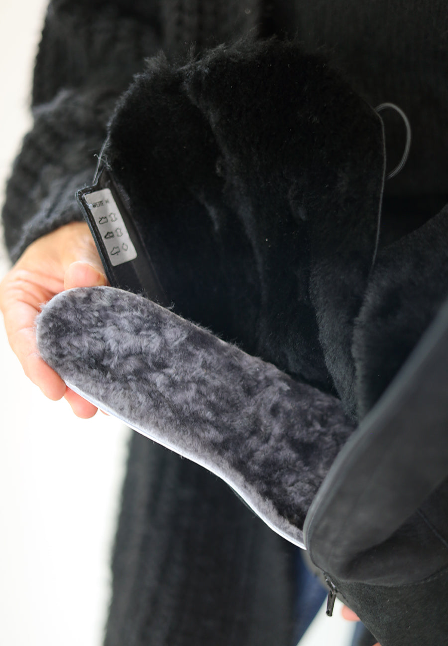 Die kalten Tage kommen so langsam und Sie fühlen sich noch nicht geborgen? Bereiten Sie sich jetzt auf den Winter vor und fassen Sie sich ein Herz mit diesem wunderschönen Veloursleder Stiefel von VITAFORM. Dieser supersofte Stiefel mit kuschlig warmer Fütterung aus Lammfell ist ein idealer Partner, egal ob Sie über den Weihnachtsmarkt schlendern, oder ein Ensemble für die Neujahrsparty zusammenstellen wollen. Mit diesen bequemen Komfort Stiefeln können Sie sich gewappnet für die Winterzeit fühlen und dank dem VITAFORM Shock-Absorber kommen Sie auch noch elegant und bequem durch den Tag.