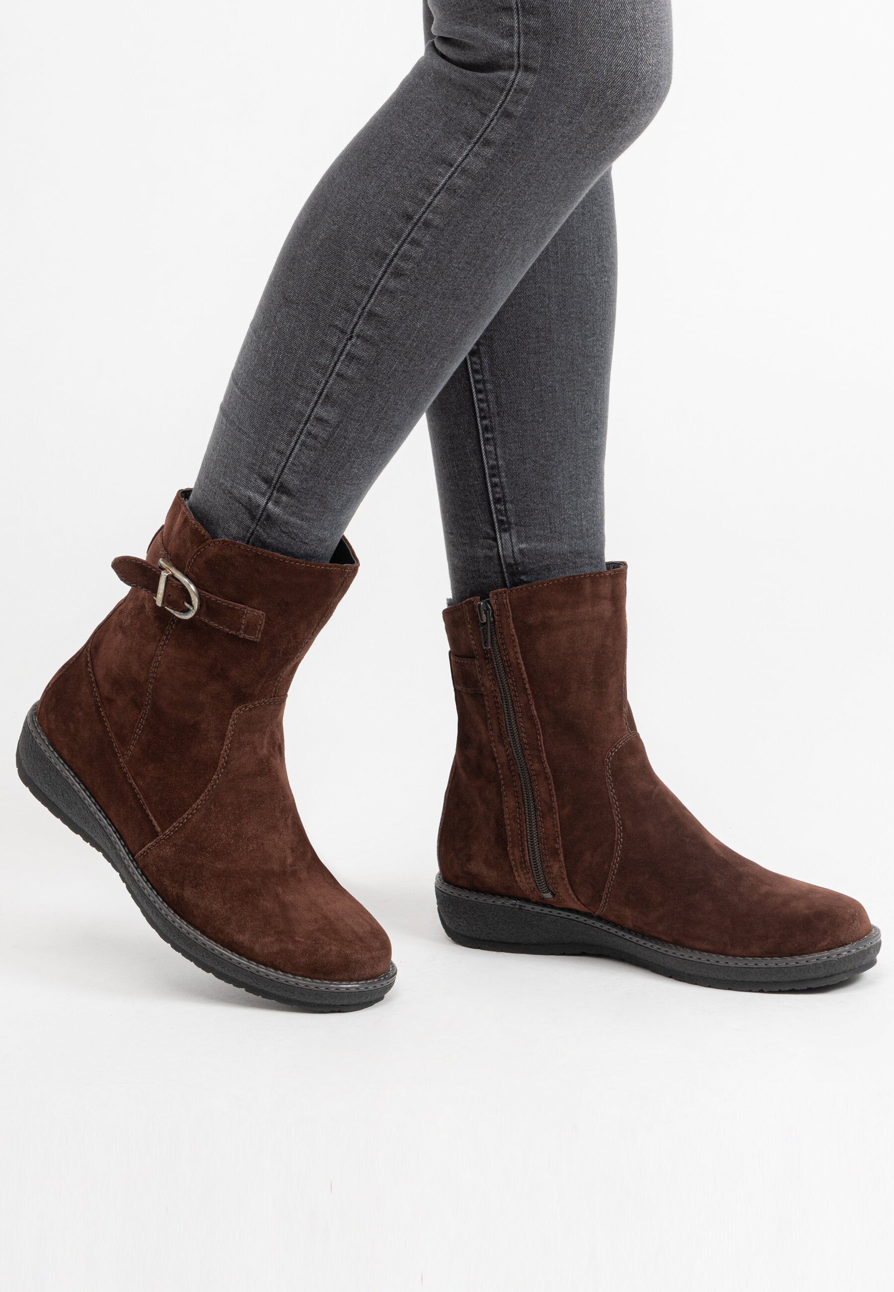 Holen Sie sich die Must-Have-Stiefelette: Im klassischen, femininen Gewand und den absolut trendigsten Farben der kommenden Herbst-/Wintersaison. Welche Farbe spiegelt SIE wieder? Ein zartes Winterrosa, verführerisches Schoko, maritimes Marine oder heißes Curry machen die Traum-Stiefelette zur modischen Leinwand Ihrer Individualität. Die VITAFORM Stiefelette aus feinem Veloursleder und rutschhemmender Kreppsohle präsentiert sich zudem von ihrer cozy Seite: Das mollige Lammfellfutter im Inneren lädt Sie (und natürlich auch Ihre Füße) zum Träumen ein, während der bequeme VITAFORM-Komfort und die optimale Schafthöhe der Stiefelette, eine wahre Liebeserklärung an Sie ist.