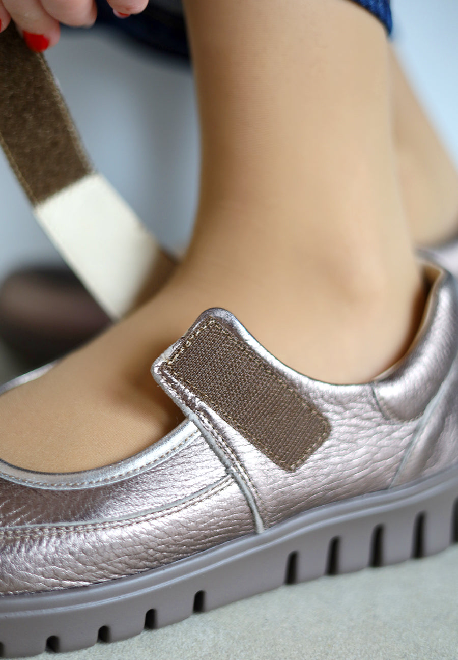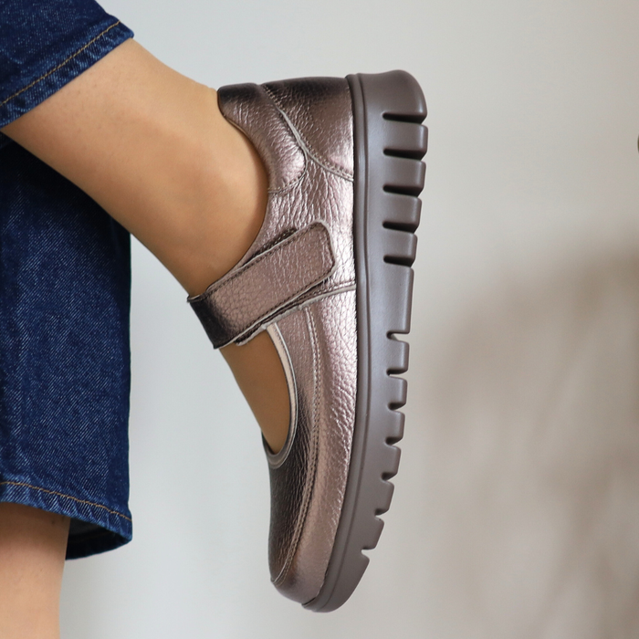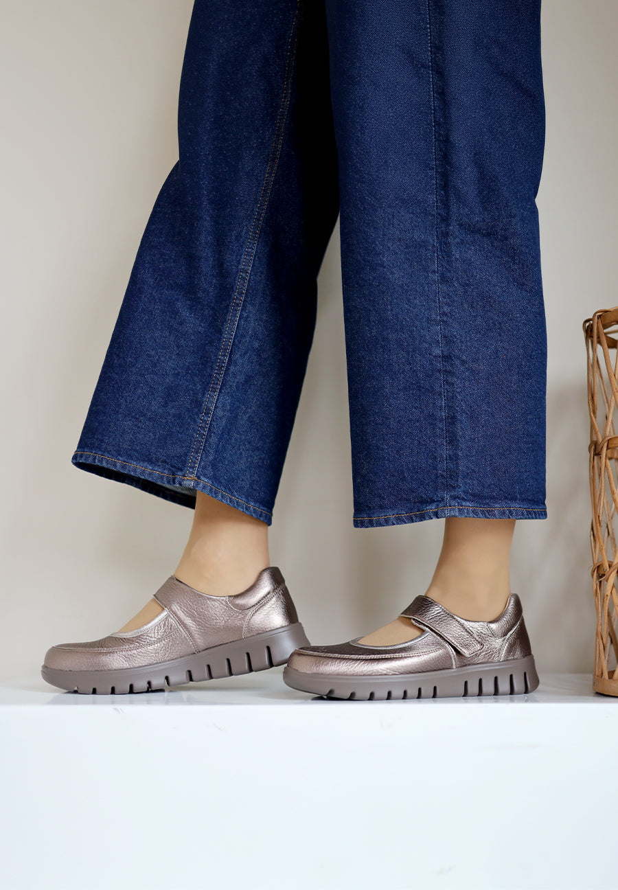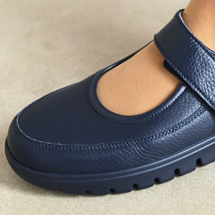 Der flexible Einfass schmiegt sich sanft an Ihren Fuß an und sorgt dafür, dass der Mary-Jane angenehm sicher sitzt, ohne einzuengen. Gleichzeitig ist die Sohle besonders biegsam und unterstützt eine natürliche Abrollbewegung bei jedem Schritt. So passt sich der Schuh harmonisch Ihren Bewegungen an und „geht“ spürbar bequem mit – für ein leichtes, unbeschwertes Tragegefühl und optimalen Halt im Alltag.