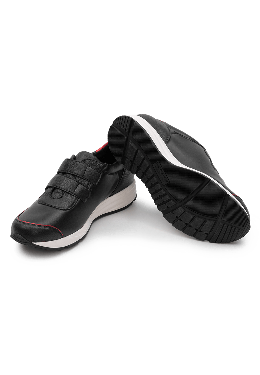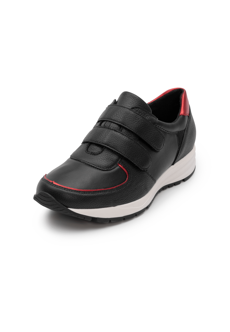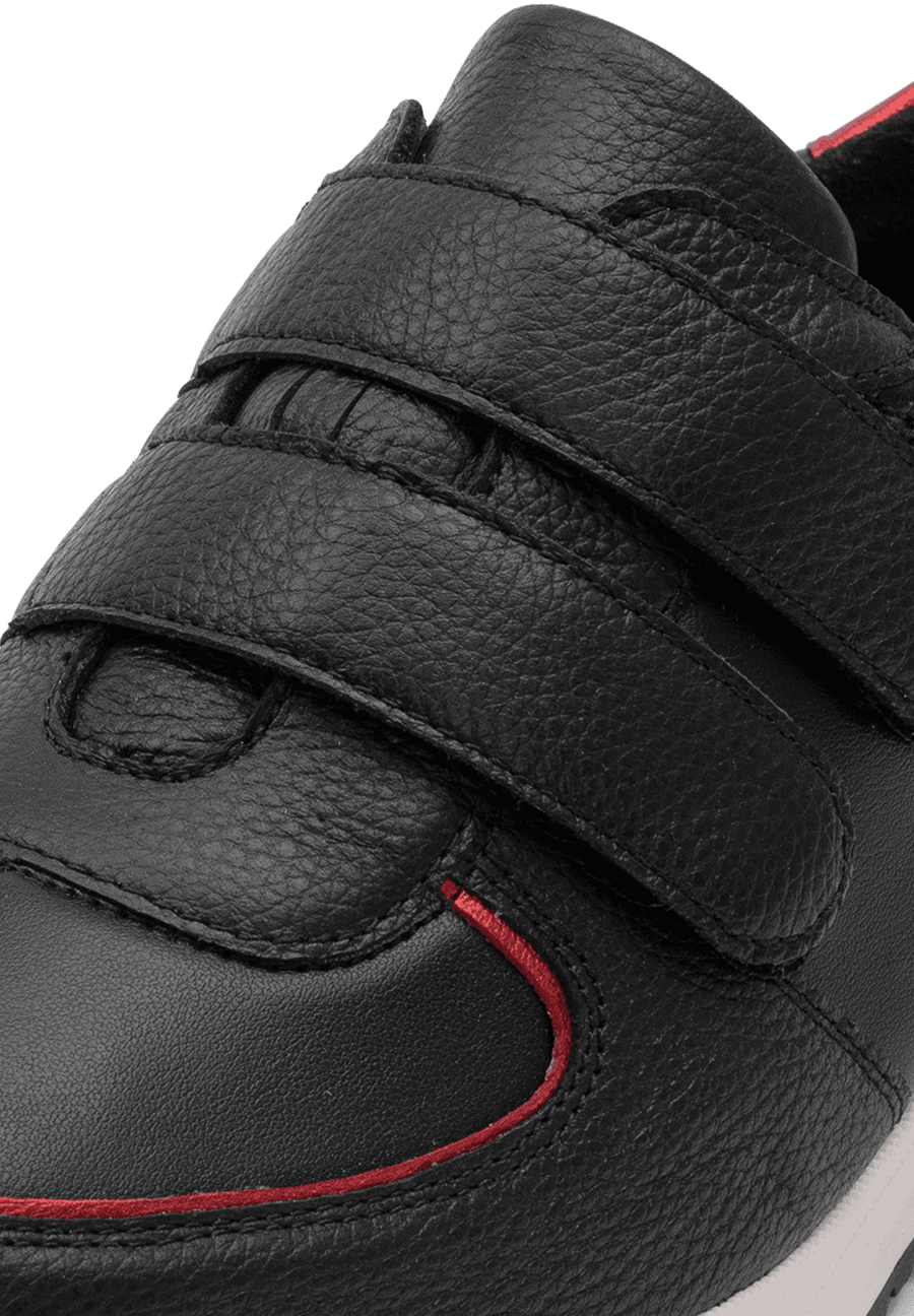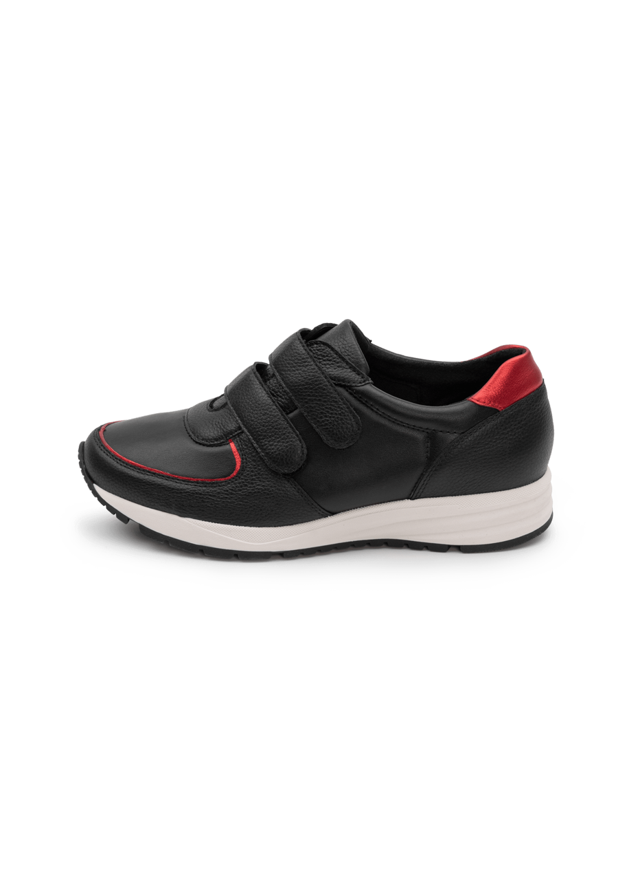 Machen Sie es sich bequem: Unser einmaliger VITAFORM Kletter aus streichelzartem Leder-/Stretch Kombination passt sich jedem Fuß perfekt an. Er sorgt für ein exzellentes Abrollen in die kommende bunte Herbstzeit, auch wenn er selbst durch seine sportliche Note auf viel Firlefanz verzichtet. Der rabenschwarze Halbschuh mit den lieblichen roten Details (dezent, aber gekonnt...) besticht durch pures Wohlfühlen: Das extra-dicke superbequeme Luftpolsterfußbett lässt Sie jeden Ihrer Schritte zelebrieren. Einfach loslaufen, den Rest macht er von ganz alleine!