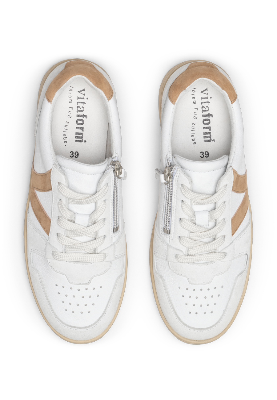 Erleben Sie unvergleichlichen Tragekomfort mit dem VITAFORM Damen Sneaker aus edlem Samtziegenleder – ein Schuh, der Ihre Sinne verwöhnt! Dieser Sneaker verführt nicht nur mit seiner luxuriösen Optik und samtweichen Haptik, sondern begeistert auch mit seiner durchdachten Ausstattung: Das ergonomisch geformte Komfortfußbett mit integrierter Luftpolsterung lässt Sie wie auf Wolken gehen und schont dabei Ihre Gelenke bei jedem Schritt. Der raffinierte Shock-Absorber im Fersenbereich fängt Stöße sanft ab und unterstützt eine mühelose, natürliche Abrollbewegung. Dank der großzügigen Komfortweite H genießen Ihre Füße den Raum, den sie verdienen – ideal auch für breitere Füße. Der seitliche Reißverschluss sorgt für ein blitzschnelles An- und Ausziehen und eine passgenaue, individuelle Anpassung. Vertrauen Sie auf VITAFORM und erleben Sie den ganzen Tag über ein Tragegefühl, das pure Begeisterung entfacht!