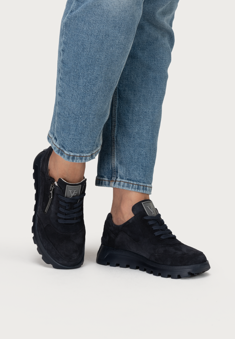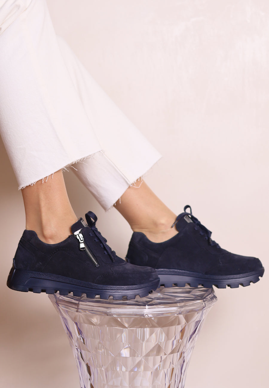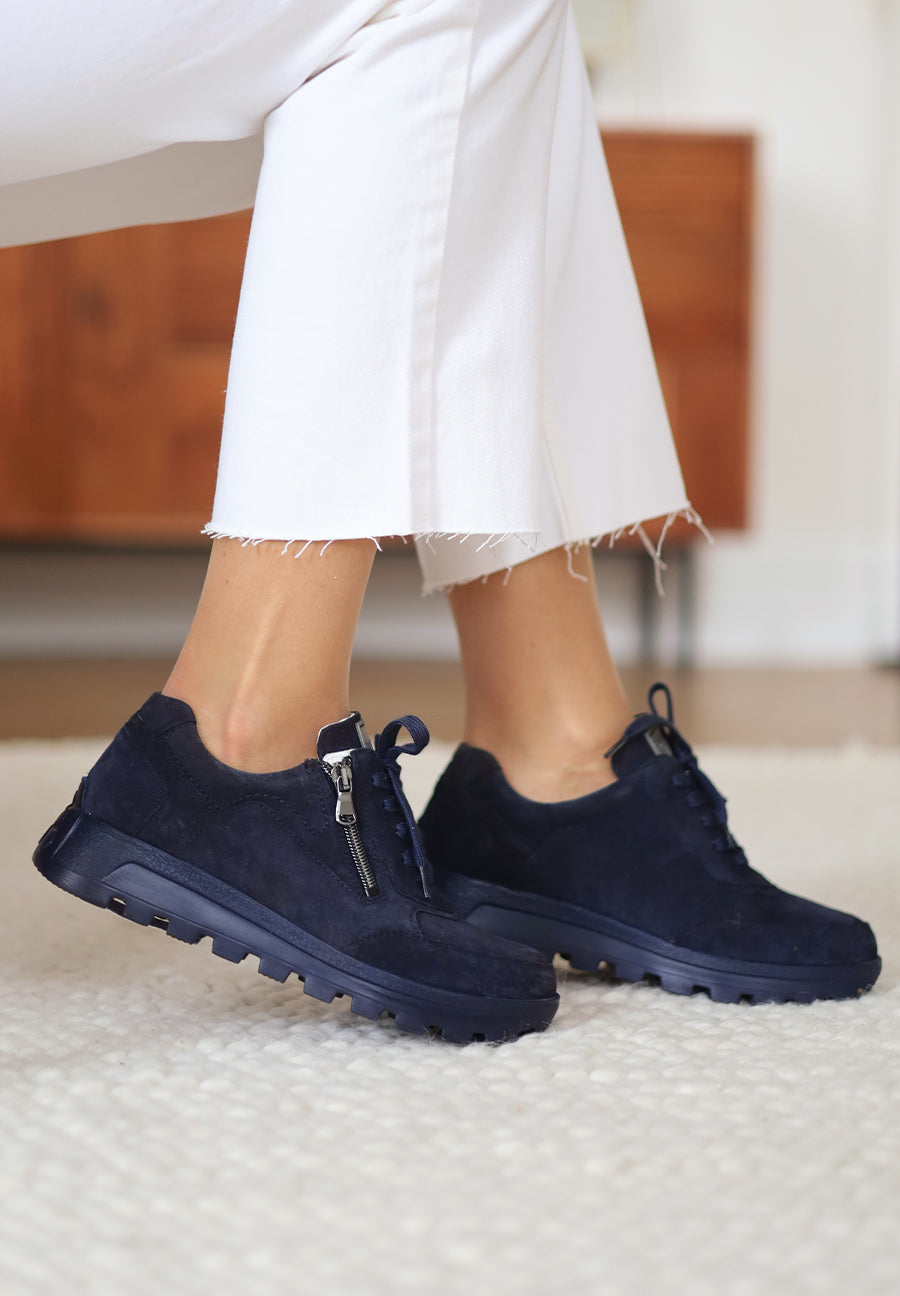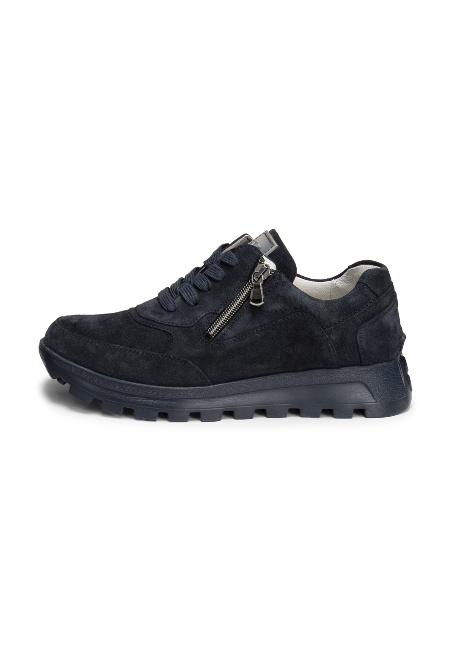 Dynamisch, bequem und wie gemacht für einen aktiven Lebensstil – dieser sportliche Sneaker aus weichem Veloursleder begleitet Sie mühelos durch den Tag. Ob beim flotten Stadtbummel, entspannten Spaziergang oder auf dem Weg ins Café, die Komfortweite H sorgt für ausreichend Platz und ein angenehmes Tragegefühl. Das austauschbare ultrasofte Komfortfußbett mit Luftpolster dämpft Ihre Schritte besser ab als je zuvor, entlastet die Gelenke und schenkt ein federndes Laufgefühl. Dank der Schnürsenkel lässt sich der Schuh individuell anpassen, während die zusätzlichen Reißverschlüsse das An- und Ausziehen besonders unkompliziert machen. Die besonders leichte EVA Laufsohle wurde sogar farblich an Ihre Lieblingsfarbe angepasst und sorgt so für eine wundervoll einheitliche Ästhetik. Ein Sneaker, der Leichtigkeit und Sportlichkeit vereint – für alle, die den Tag aktiv genießen wollen!
