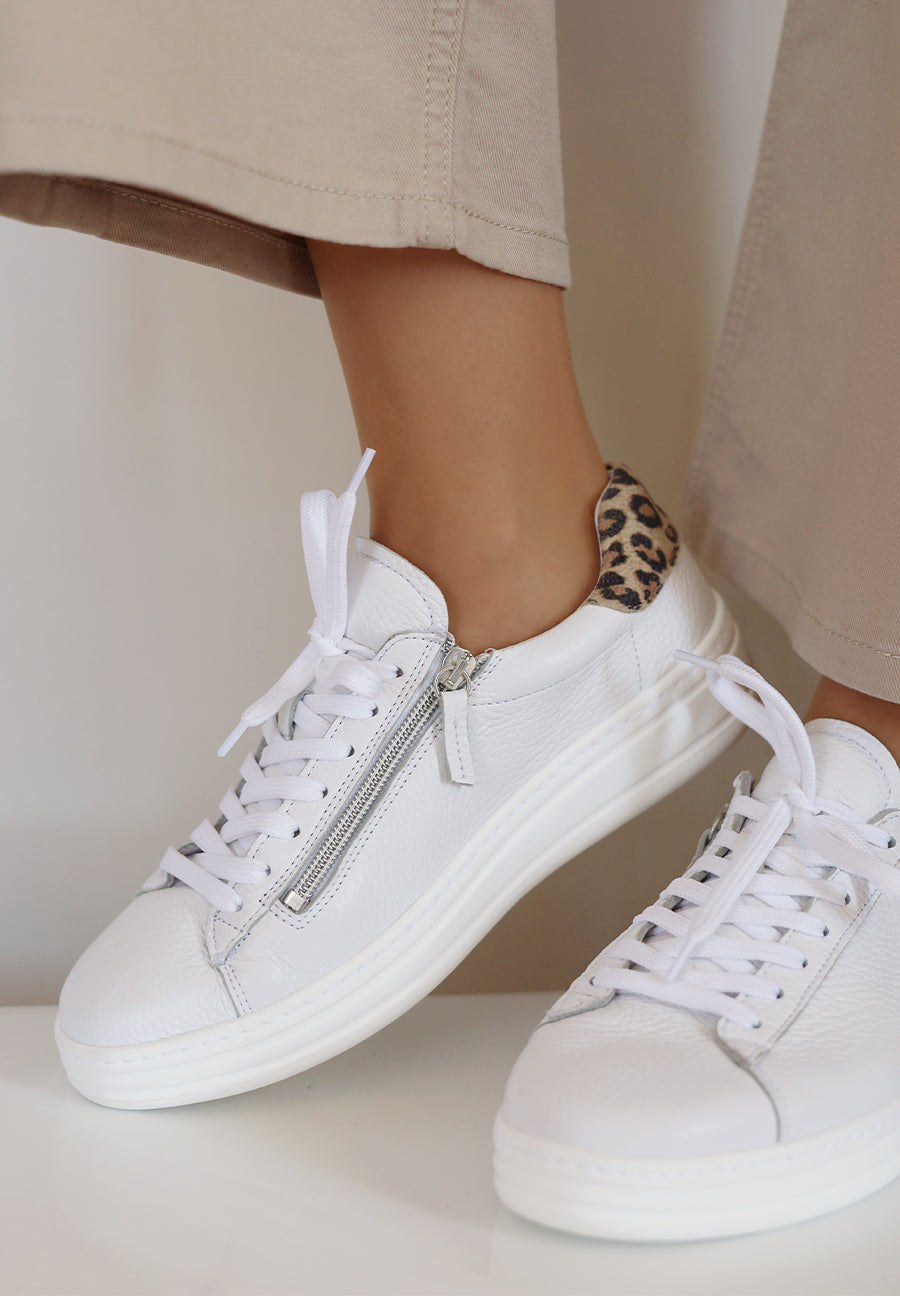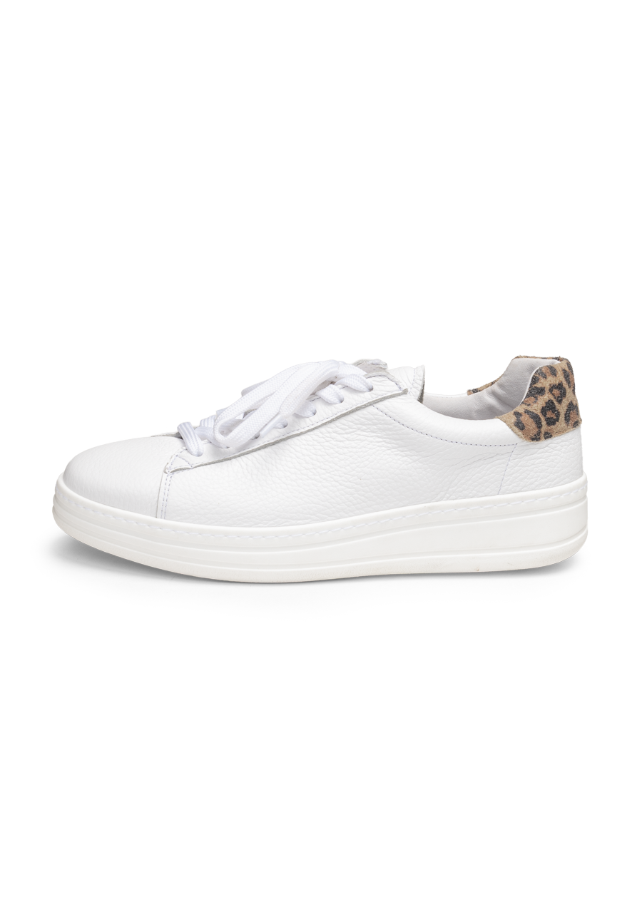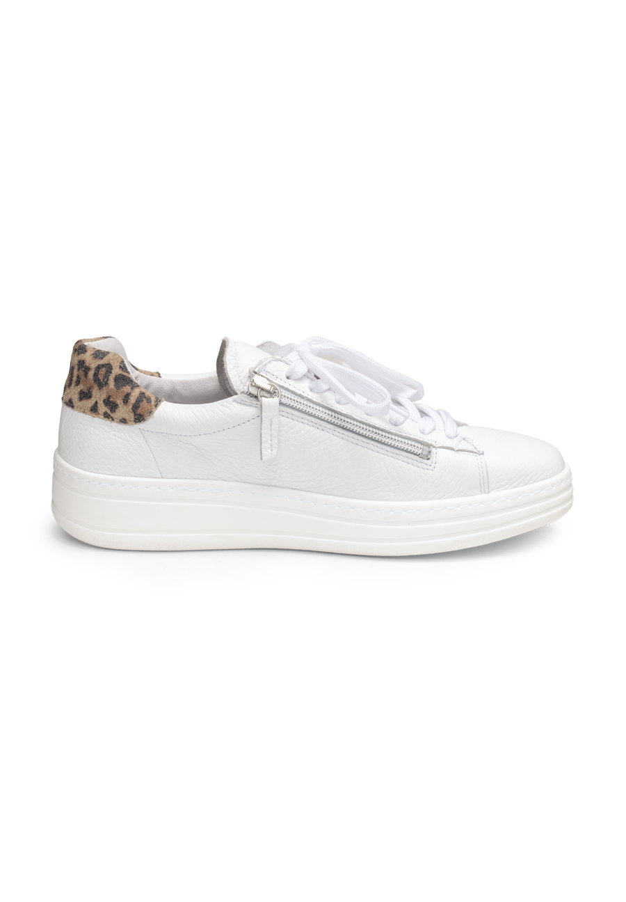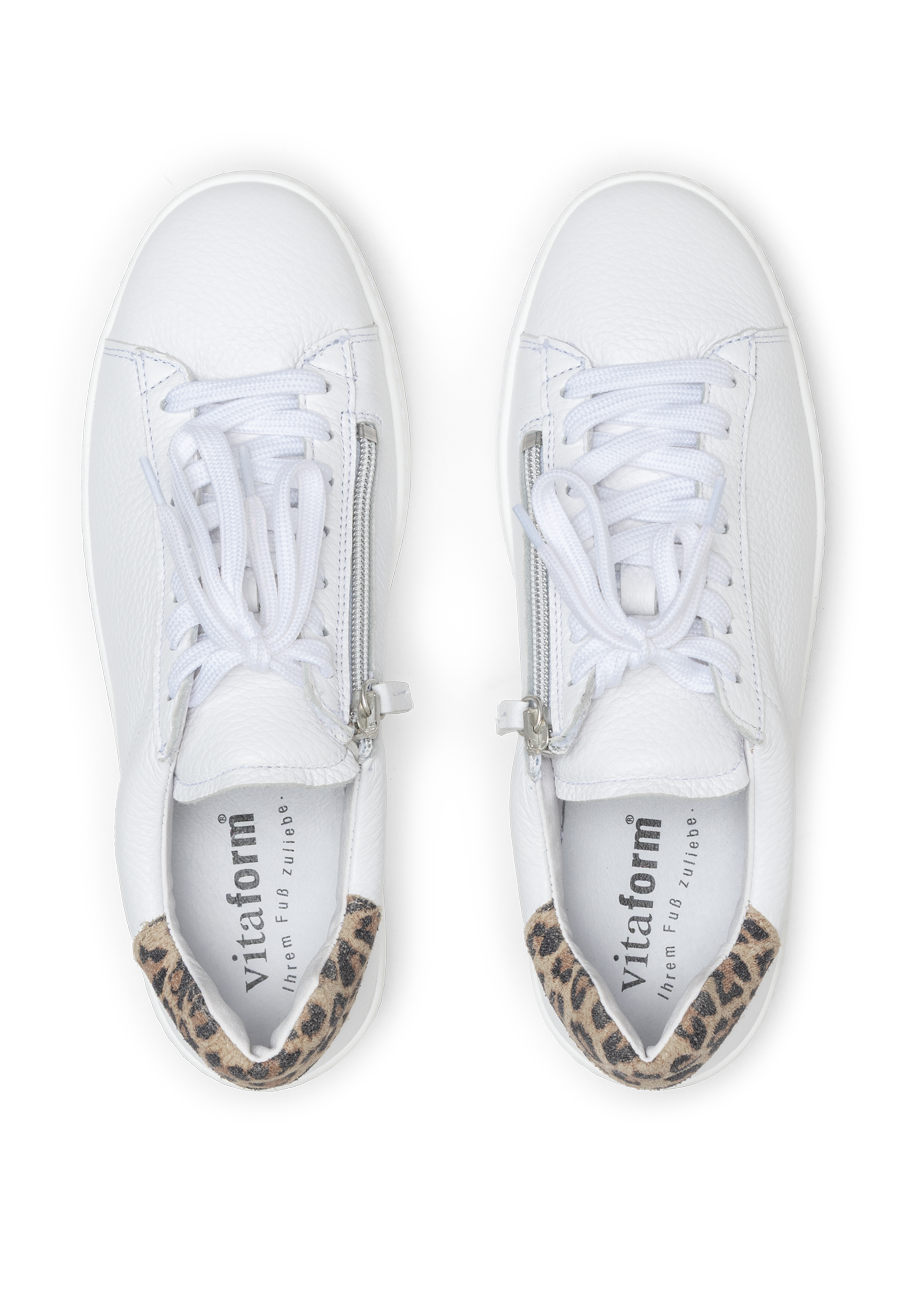 Dieser vornehme VITAFORM Damen Sneaker aus butterweichem Hirschleder vereint luxuriösen Tragekomfort mit stilvoller Raffinesse. Dank der Komfortweite H schenkt er auch anspruchsvollen Füßen mit mehr Volumen ein entspanntes Tragegefühl – ganz ohne einzuengen. Ein zusätzlicher Reißverschluss sorgt für komfortables Hineinschlüpfen, während das austauschbare Luftpolsterfußbett mit Echtlederbezug jeden Schritt samtweich abfedert. Der integrierte Shock-Absorber entlastet Ferse, Gelenke und Rücken spürbar – ideal für längere Tage auf den Beinen. Veredelt wird der Look durch ein stilvoll platziertes Animal-Print-Detail, das dem Sneaker eine dezente Prise Extravaganz verleiht. Ein bisschen Wildheit darf auch sein! Ein Modell für Frauen, die Wert auf erstklassige Materialien, durchdachten Komfort und modische Eleganz legen.