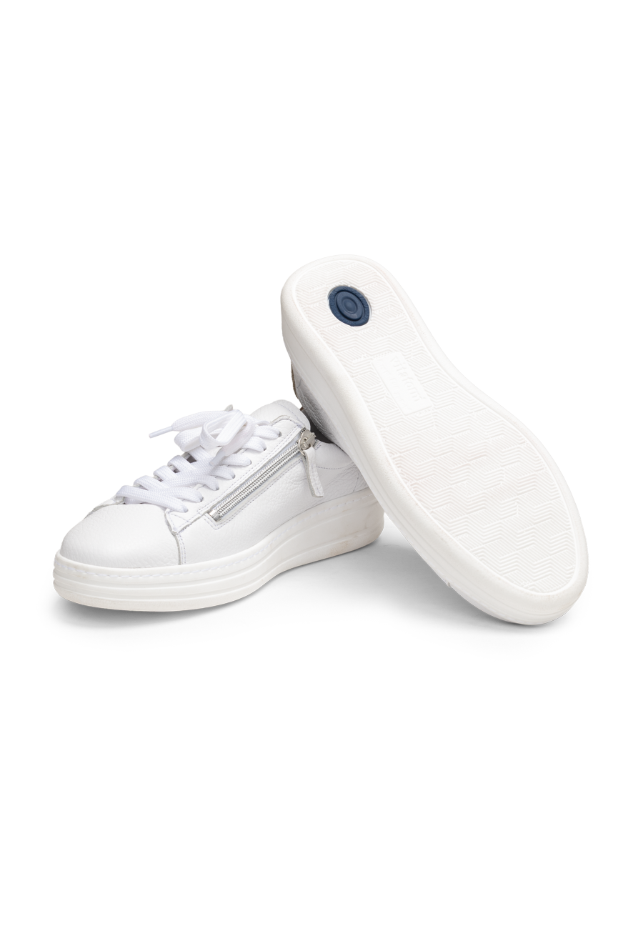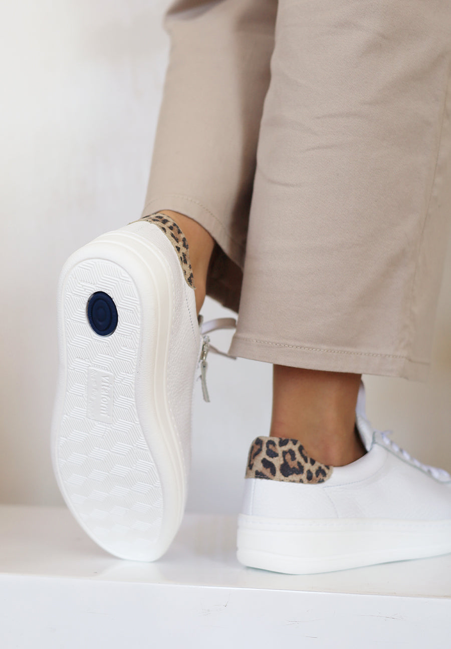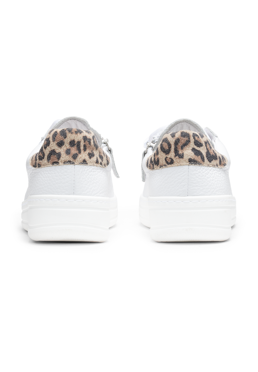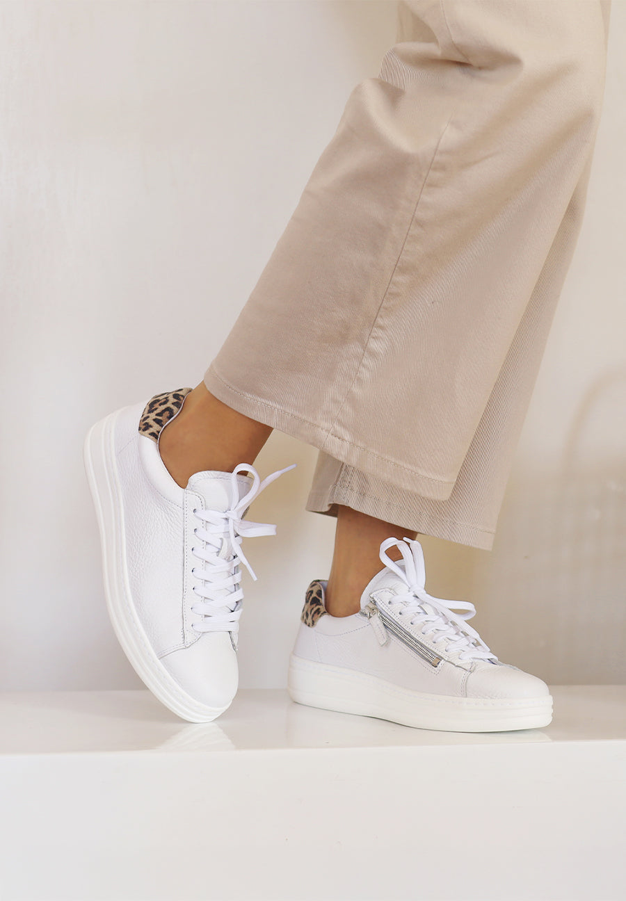 Dieser vornehme VITAFORM Damen Sneaker aus butterweichem Hirschleder vereint luxuriösen Tragekomfort mit stilvoller Raffinesse. Dank der Komfortweite H schenkt er auch anspruchsvollen Füßen mit mehr Volumen ein entspanntes Tragegefühl – ganz ohne einzuengen. Ein zusätzlicher Reißverschluss sorgt für komfortables Hineinschlüpfen, während das austauschbare Luftpolsterfußbett mit Echtlederbezug jeden Schritt samtweich abfedert. Der integrierte Shock-Absorber entlastet Ferse, Gelenke und Rücken spürbar – ideal für längere Tage auf den Beinen. Veredelt wird der Look durch ein stilvoll platziertes Animal-Print-Detail, das dem Sneaker eine dezente Prise Extravaganz verleiht. Ein bisschen Wildheit darf auch sein! Ein Modell für Frauen, die Wert auf erstklassige Materialien, durchdachten Komfort und modische Eleganz legen.