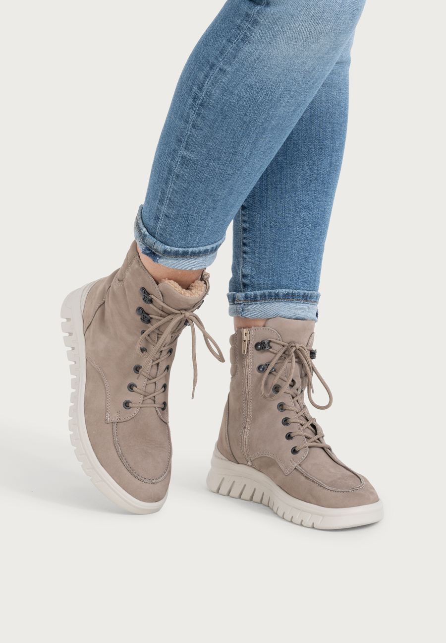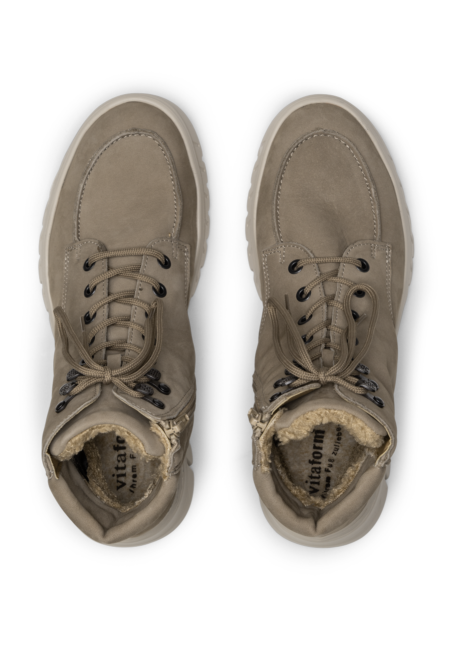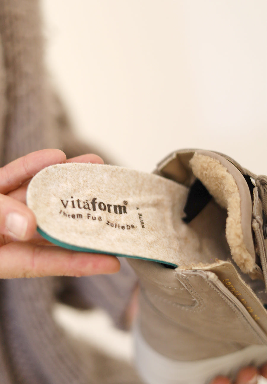 Diese modische VITAFORM Damen Stiefelette aus geschmeidigem Softnubukleder vereint stilvolles Design mit maximalem Tragekomfort und ist die perfekte Wahl für kühle Tage. Dank der Komfortweite H bietet sie ausreichend Platz für kräftigere Füße und sorgt so für ein entspanntes Tragegefühl, das nicht nur ideal bei Problemfüßen ist. Der praktische seitliche Reißverschluss ermöglicht ein bequemeres An- und Ausziehen und verschafft zusätzlichen Platz, während das herausnehmbare Fleecefußbett für wohlige Wärme und die Möglichkeit zur individuellen Anpassung sorgt. Die rutschhemmende Sohle gibt Sicherheit auf allen Untergründen und macht die Stiefelette zu einem vielseitigen Alltagsbegleiter. Sichern Sie sich dieses Modell, das Design, Komfort und Funktionalität perfekt in sich vereint und Ihre Füße bei jedem Schritt verwöhnt!