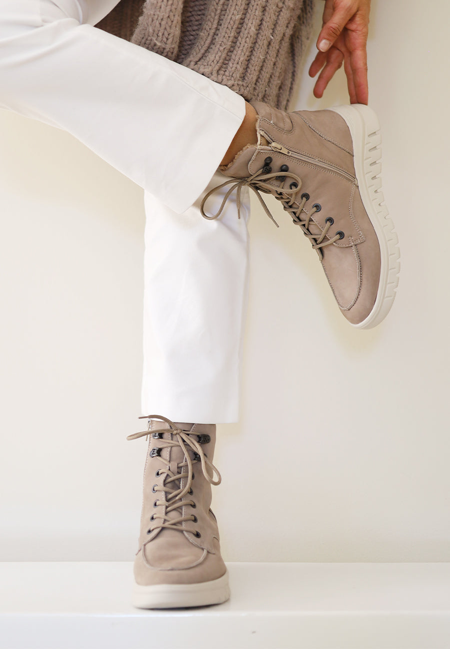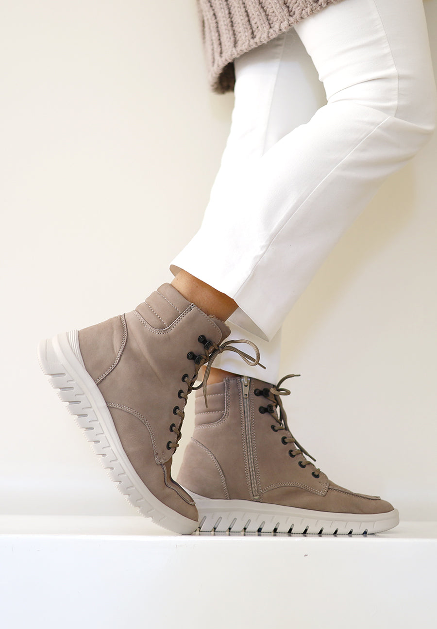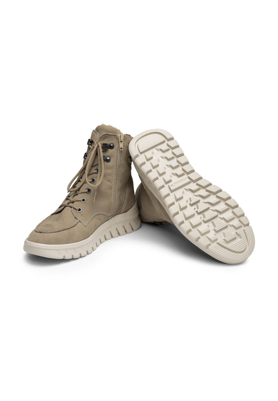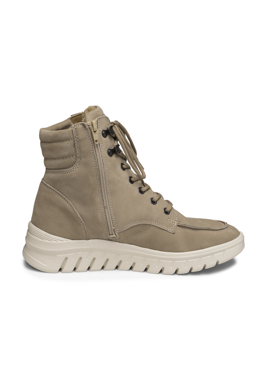 Diese modische VITAFORM Damen Stiefelette aus geschmeidigem Softnubukleder vereint stilvolles Design mit maximalem Tragekomfort und ist die perfekte Wahl für kühle Tage. Dank der Komfortweite H bietet sie ausreichend Platz für kräftigere Füße und sorgt so für ein entspanntes Tragegefühl, das nicht nur ideal bei Problemfüßen ist. Der praktische seitliche Reißverschluss ermöglicht ein bequemeres An- und Ausziehen und verschafft zusätzlichen Platz, während das herausnehmbare Fleecefußbett für wohlige Wärme und die Möglichkeit zur individuellen Anpassung sorgt. Die rutschhemmende Sohle gibt Sicherheit auf allen Untergründen und macht die Stiefelette zu einem vielseitigen Alltagsbegleiter. Sichern Sie sich dieses Modell, das Design, Komfort und Funktionalität perfekt in sich vereint und Ihre Füße bei jedem Schritt verwöhnt!