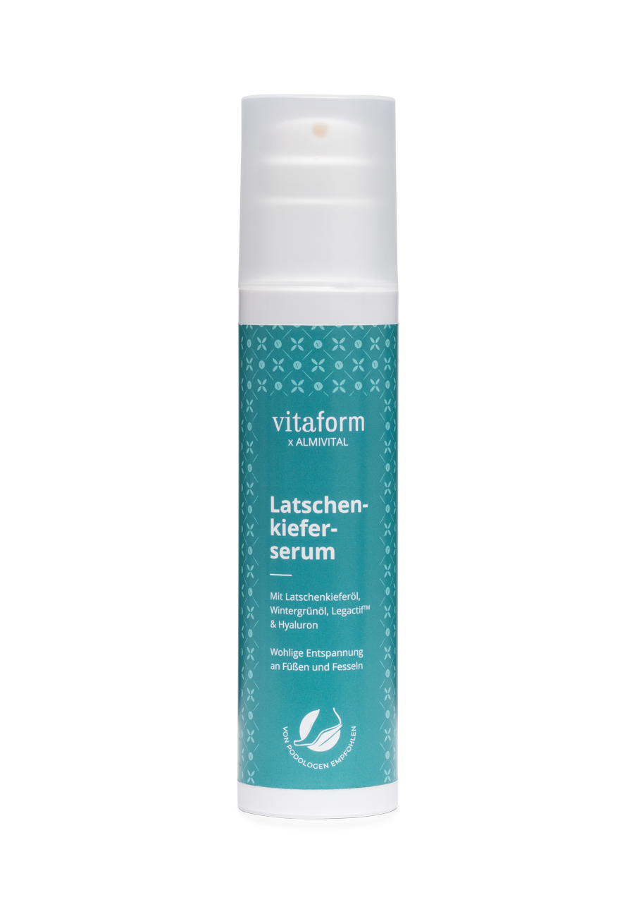 Sind Sie bereit für den nächsten Geniestreich von VITAFORM x ALMIVITAL? Dann erleben Sie jetzt das brandneue Latschenkieferserum! Sie leiden unter erschlaffenden, ermüdenden Beinen, weil Sie den ganzen Arbeitstag lang auf den Beinen stehen müssen? Sie sind am Feierabend so träge, dass Sie kaum noch aus dem Sessel möchten? Dann haben Sie mit dem Latschenkieferserum eine wahre Wunderwaffe gegen müde Beine entdeckt. Schon eine kleine Portion aus der sehr ergiebigen Flasche reicht, damit Ihre Beine wieder aufgepäppelt werden. Dank des hochwirksamen Pflanzenkomplexes Legactif und der 1,5% Latschenkieferöl wird das Gefühl von schweren Beinen reduziert und Ihre Beine erleben einen Frischeboost! Dank des Wintergrünöls werden zudem Ihre Muskeln und Gelenke beruhigt, während die Hyaluronsäure Ihrer Haut die nötige Feuchtigkeit spendet. Sichern Sie sich also jetzt eine Flasche unseres Latschenkieferserums, nehmen Sie eine haselnussgroße Portion und massieren Sie das Serum von unten nach oben sanft in Ihre müden Waden und Schenkel ein und erleben Sie in kürzester Zeit ein belebendes Frischegefühl, das Ihresgleichen sucht! 99,50€|1 Liter