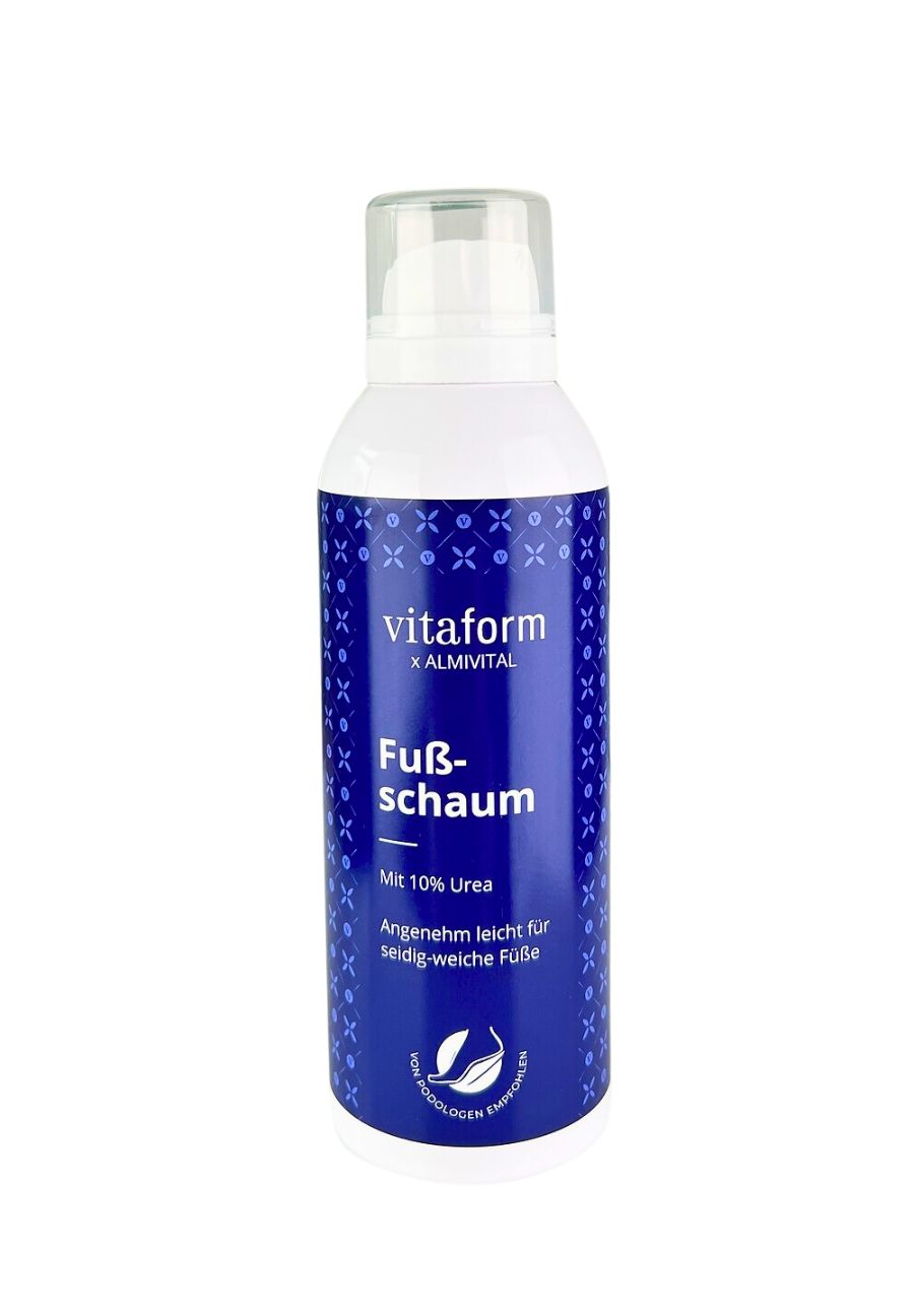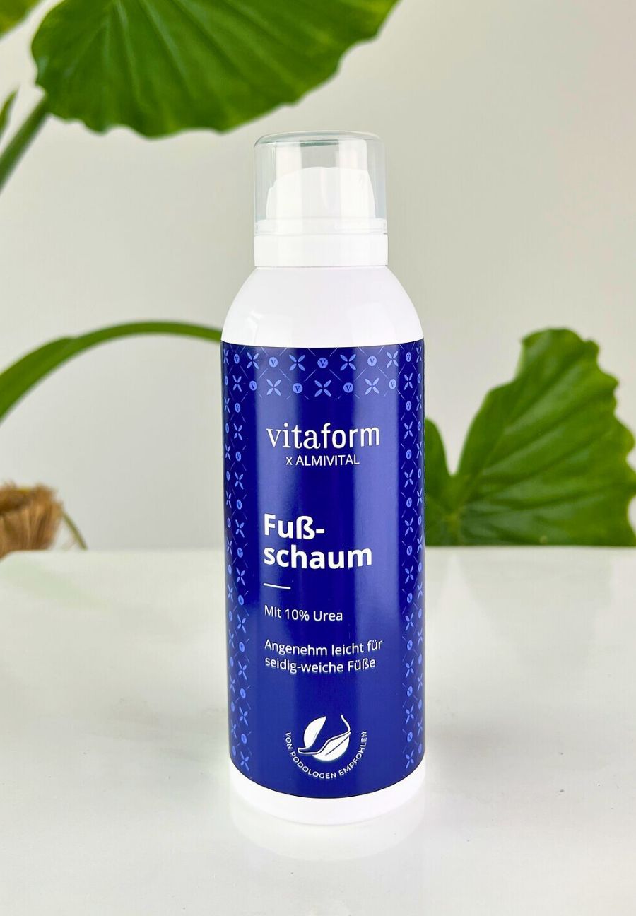 Sind Sie bereit für das ultimative Zusammenspiel der zwei Wohlfühlexperten VITAFORM und Almivital? Entdecken Sie unseren einzigartigen Fußschaum, den Seidenstrumpf für Ihre Füße, der perfekt für raue, trockene oder verhornte Füße geeignet ist und Ihre Füße schützt wie eine zweite Haut dank der Skin Lipid Matrix. Unser Schaum ist wundervoll ergiebig, zieht in Sekundenschnelle in Ihre Haut ein und schenkt dank feuchtigkeitsspendender Hyaluronsäure und 10% Urea-Anteil einen hohen Feuchtigkeitsgehalt. Der Schaum fühlt sich nicht nur herrlich an und riecht fantastisch nach Zitronengras, sondern wirkt schnell ein und versorgt Ihre Füße nachhaltig mit all den Wirkstoffen, die sie benötigen. Ein kleiner Klecks reicht vollkommen aus für eine intensive Pflege, wodurch unser Schaum Ihnen auch lange ausreicht. So pflegen Sie Ihre Füße richtig mit VITAFORM x Almivital!99,50€/L
