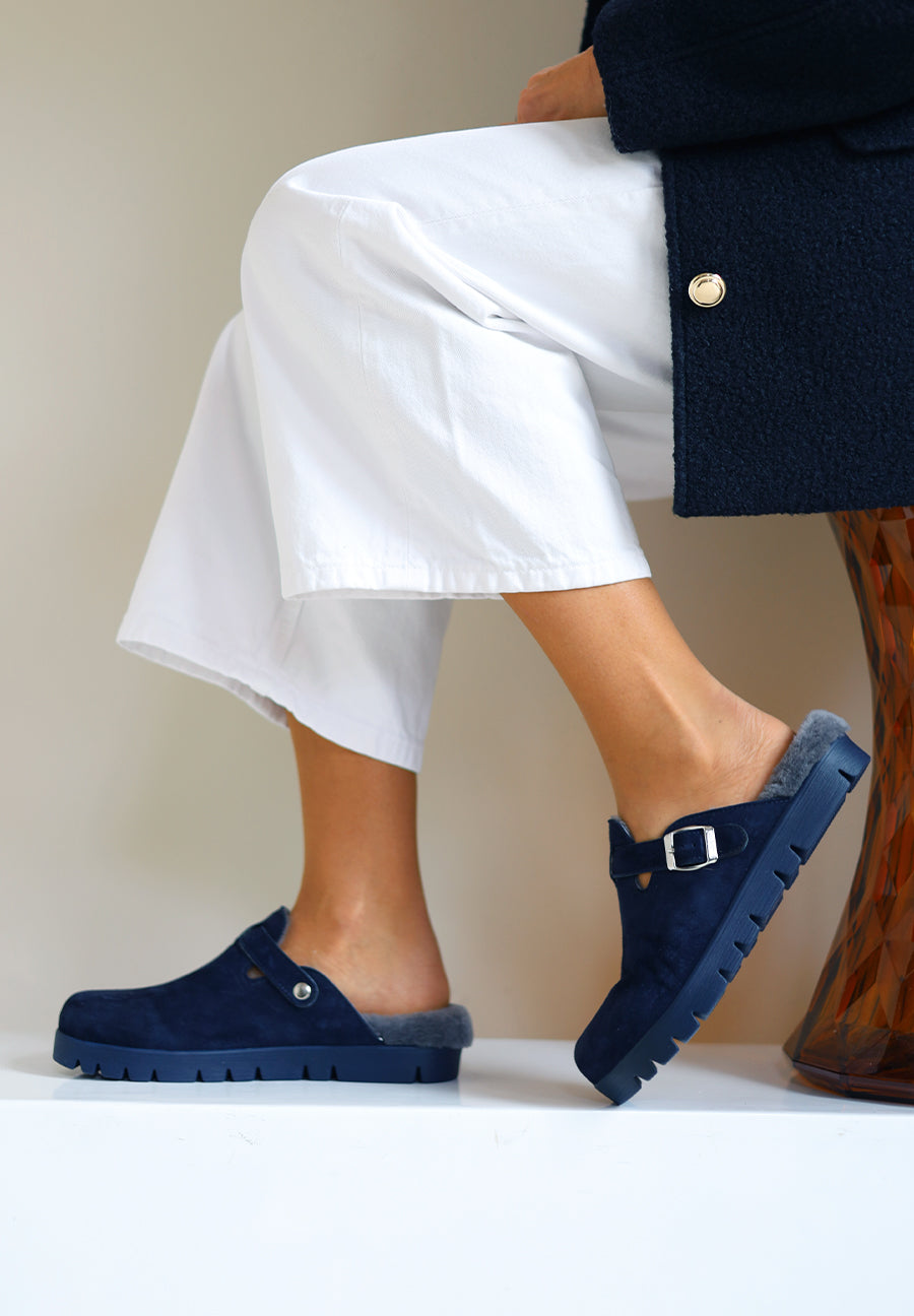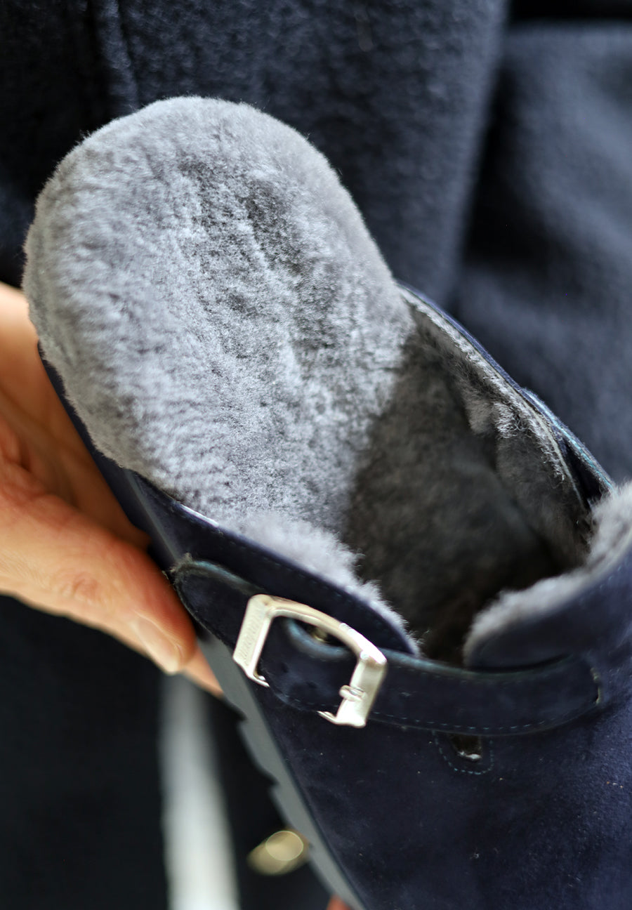 Draußen ist es eiskalt und die Kälte schleicht sich auch in Ihre Wohnung? Sie sehnen sich nach warmen Füßen für Zuhause? Hier haben wir den perfekten Begleiter: diesen kuschelig warmen VITAFORM Clog für Damen. Außen aus feinem Samtziegenleder, das nicht nur durch seine weiche Haptik und elegante Optik besticht, sondern sich auch wunderbar flexibel an den Fuß anschmiegt. Innen sorgt ein durchgängiges Lammfellfutter gemeinsam mit einem wärmenden Lammfellfußbett für ein unvergleichlich weiches und kuschelig warmes Tragegefühl, das zudem auch noch atmungsaktiv ist. Jeder Schritt wird durch die rutschhemmende Sohle mit integriertem Shock-Absorber angenehm gedämpft – eine echte Wohltat für Ferse, Gelenke und Rücken, besonders bei empfindlichen oder beanspruchten Füßen. Die praktische Dornschließe rundet das Design funktional ab und erlaubt eine individuelle Anpassung. Perfekt für alle, die sich während der eisigen Jahreszeit auch zuhause geborgen fühlen möchten.
