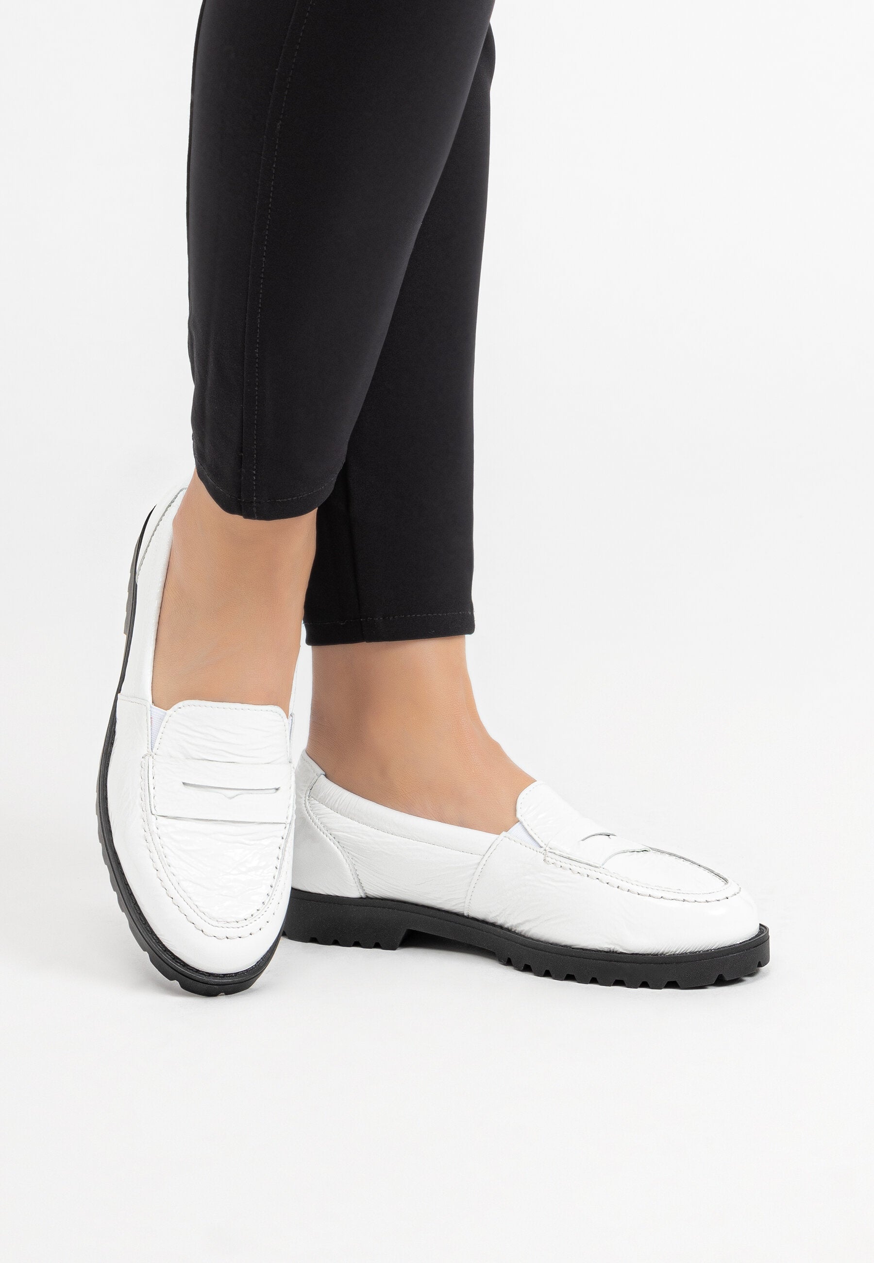 Verleih jedem Outfit das gewisse Etwas! Mit dem Alleskönner-Mokassin von vitaform aus superglänzendem Hirschlackleder. In einem aufregenden feurigen Rotton für alle selbstbewussten, lebensbejahenden Fashionistas. Für die extra-frische Brise für jeden Deiner Styles in einem edlem Marineblau. Dieses klassische Modell mit maskuliner Profilsohle zur optischen Krönung und voller Luxusausstattung darf sicherlich in keinem Schuhschrank fehlen! Die pure Verwöhnung Deiner Füße: Exklusive 3-fach-Dämpfung dank exklusivem Shock-Absorber, entlastender Vorfußpolsterung und supersoftem Luftpolsterfußbett. Die lässige grobe Profilsohle punktet in Sachen Halt und Optik – müssen wir mehr sagen?