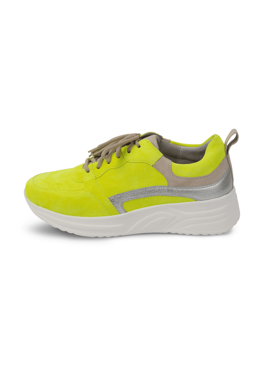 Grell - greller - Neon! VITAFORM holt die Lieblingsfarbe der 80er zurück und zaubert damit einen einzigarten Sneaker in tollem Design! Neonfarben sind ein absolutes Must-have in dieser Saison und lassen jedes Outfit erstrahlen. Hauptdarsteller ist dieser VITAFORM Sneaker aus weichem Verloursleder! Die frechen, farbigen Schnürsenkel geben diesem tollen Alltagsbegleiter den letzten Effekt, um wirklich jede Modeikone schwachwerden zu lassen! Durch den bequemen Sneaker-Plateau von 4,5cm ist gehen wie auf Wolken garantiert. Sichern Sie sich Ihre Zeitmaschine in coolem Pink oder Gelb!