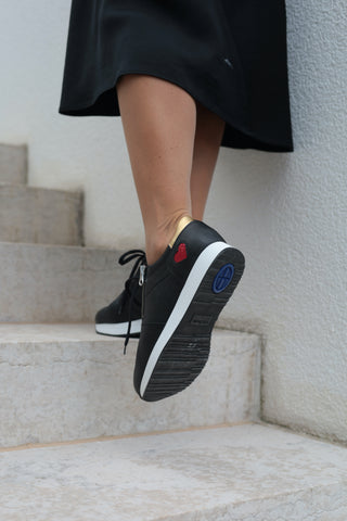 Die drei Komponenten arbeiten zusammen, genau da, wo es beim Gehen und Stehen wichtig ist. Der Shock-Absorber dämpft jeden Schritt an der Ferse ab. Die Vorfußpolsterung nimmt dem empfindlichen Ballen den Druck beim Auftritt und Abrollen. Und das Luftpolsterfußbett ist perfekt auf die Anatomie Ihres Fußes abgestimmt.