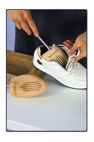 Hierfür sind Schuhspanner unabdingbar, denn Sie halten den Schuh nicht nur in seiner optischen, sondern auch in seiner Passform. Schuhspanner aus Holz eignen sich dabei am besten, da Holz die Feuchtigkeit sehr gut aufnimmt, welche im Schuh entsteht. Idealerweise legen Sie die Schuhspanner immer direkt nach dem Tragen in den Schuh. Lassen Sie ihn, wenn möglich, einen ganzen Tag lang im Schuh. Regelmäßiger Einsatz wird dafür sorgen, dass Ihnen die Passform des Schuhs erhalten bleibt und etwaige Bildung von Gehfalten reduziert wird.