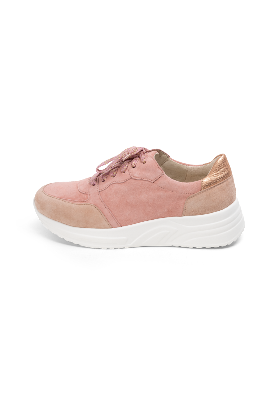 Weich, bequem und einfach schön! Das beschreibt diesen Sneaker aus Samtziege kurz und knapp. Und was erwartet man mehr von einem Sneaker?! Dieses Prachtkerlchen ist dabei edel und sportlich zugleich und lässt sich perfekt kombinieren. Die drei Farben passen sich jedem Kleiderschrank optimal an. Ein besonderer Blickfang sind die breiteren Schnürsenkel in Schuhfarbe, die mit einem glitzernden Lurexfaden durchzogen sind. Und natürlich ist ein Shock-Absorber und ein komfortables Luftpolsterfußbett mit von der Partie - sie garantieren einen schonenden und weichen Auftritt. Was sagt ihr Schuhschrank? Noch Platz, um ihm ein neues Zuhause geben zu können? Man wird Sie beneiden!