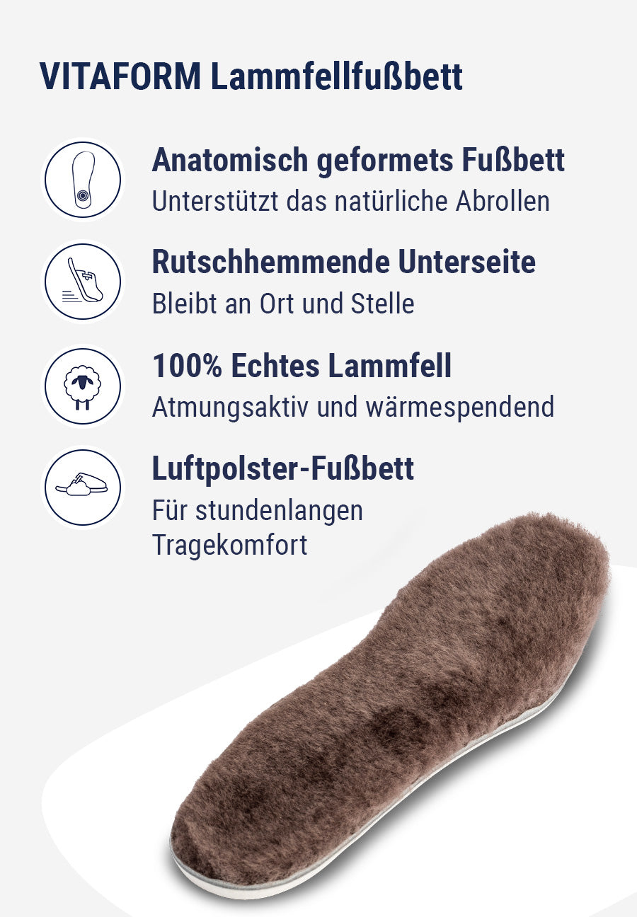 Perfekte Innenausstattung für kalte Tage: Das wärmende VITAFORM-Lammfellfußbett lässt frierende Männerfüße in der kalten Jahreszeit sicherlich nicht im Stich und bekämpft gleichzeitig schwitzende Füße durch optimale Atmungsaktivität! Das ultimative Must-Have für den Winter und optimal für alle männlichen Outdoor-Fans, die die Kälte lieber draußen lassen, dank unserer optimaleren Wärmeisolierung! Geben Sie Ihren Schuhen das ultimative Tuning und machen Sie sie mit diesen Einlegesohlen 100% wintertauglich für die frostige Jahreszeit. Supersoft eingebettet, dank integriertem einzigartigem Luftpolster von den Zehen bis zur Ferse, versorgt Man(n) seine Füße nur mit dem Besten!