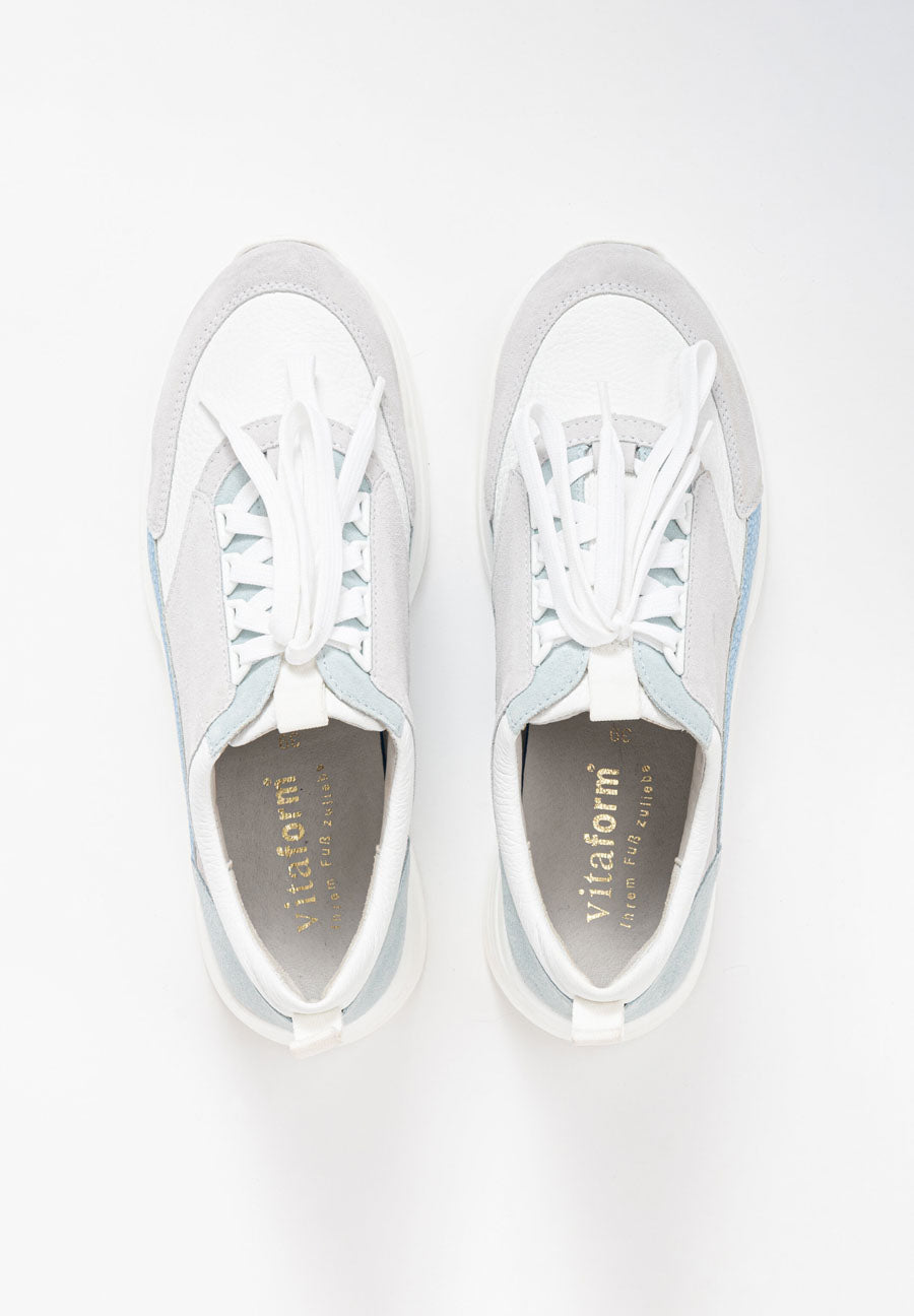 Traumsneaker sucht Traumfrau! VITAFORM hat extra für Sie einen Sneaker kreiert, der förmlich nach tollen Temperaturen schreit! Die wunderbaren Pastell-Töne spiegeln nicht nur eine immense Leichtigkeit wieder, sondern lassen Sie auch eine solche spüren! Der integrierte Shock-Absorber federt Ihren Gang extrem leicht ab und lässt Sie absolut Frei sein. Durch das austauschbare Fußbett, das Ihnen ein zusätzliches Luftpolster bietet, haben Ihre Füße auch den Platz, den sie absolut verdienen. Auch das beste Material was VITAFORM zu bieten hat, wurde hier verwendet – traumhaft bequemes Hirschleder. Hach… Schwachwerden vorprogrammiert!