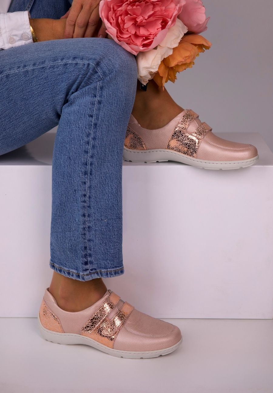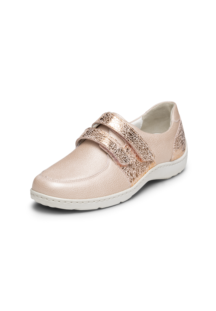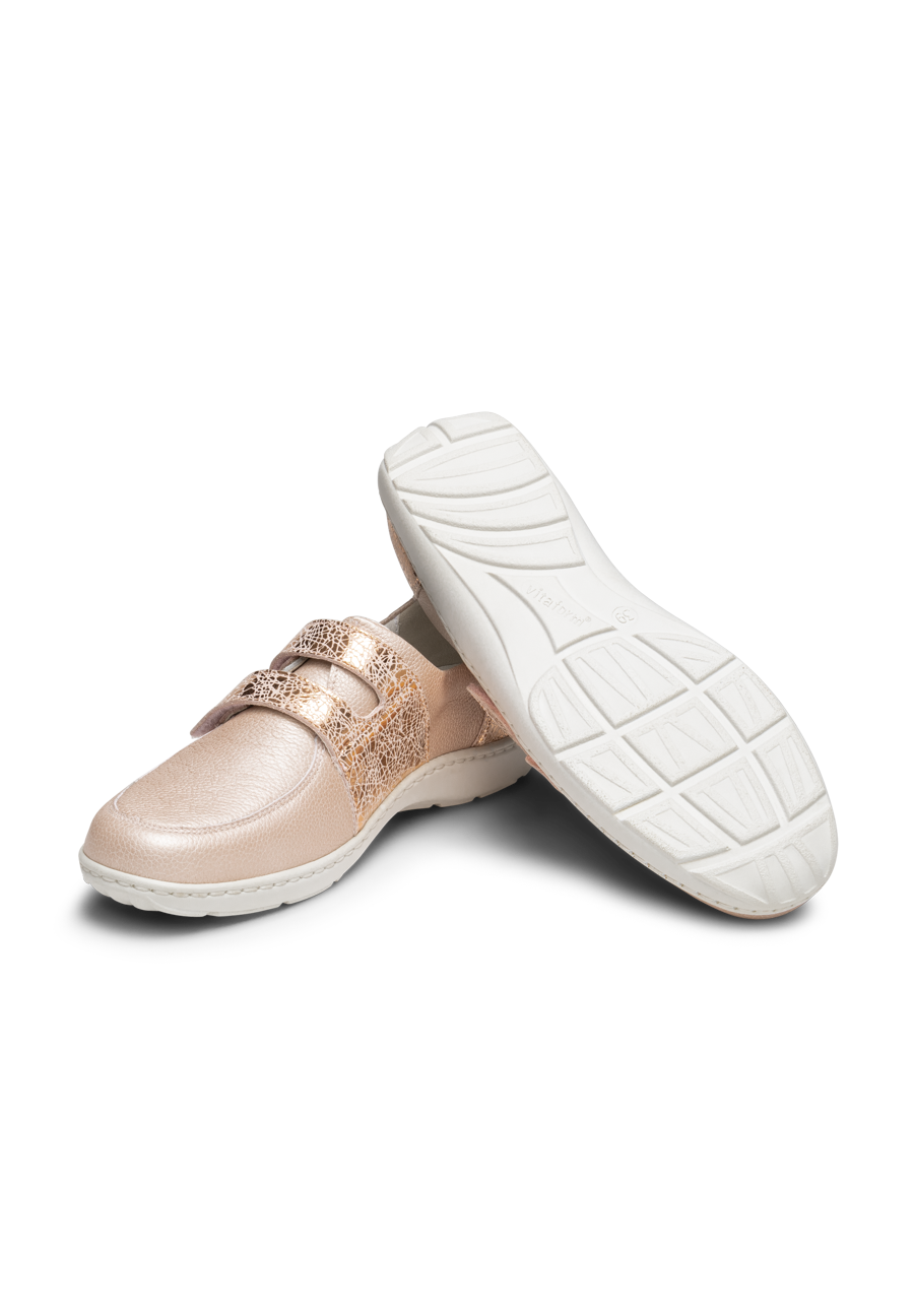Entdecken Sie Ihren neuen idealen Begleiter mit unserem Halbschuh aus feinem Nappaleder. Hier wird Eleganz und Tragekomfort nahtlos miteinander verbunden. Das hochwertige und atmungsaktive Nappaleder gibt diesem Sneaker die nötige Weichheit, damit Sie optimalen Tragekomfort genießen können. Im Inneren liegt unser innovatives VITAFORM Komfortfußbett mit eingearbeiteter Luftpolsterung und einem Echtlederbezug. Dieses Fußbett federt Ihre Schritte sanft ab und sorgt für ein wohliges Laufgefühl, während der Echtlederbezug für ein atmungsaktives Fußklima sorgt. Dank des praktischen Klettverschlusses genießen Sie zudem ein schnelles An- und Ausziehen des Schuhs. Gönnen Sie sich den Luxus, den sie verdienen, und gehen Sie mit Zuversicht und Komfort durch Ihren Tag.