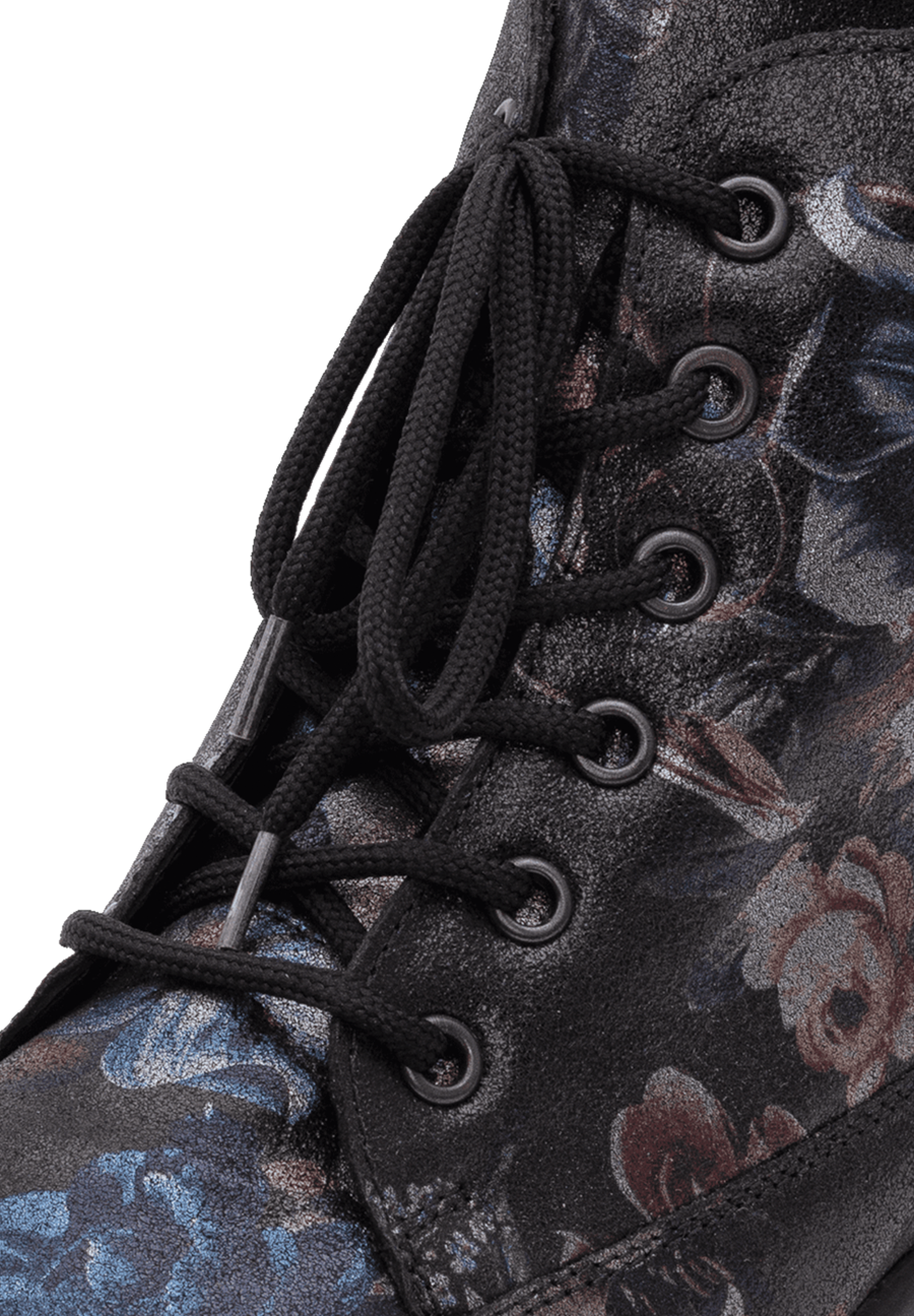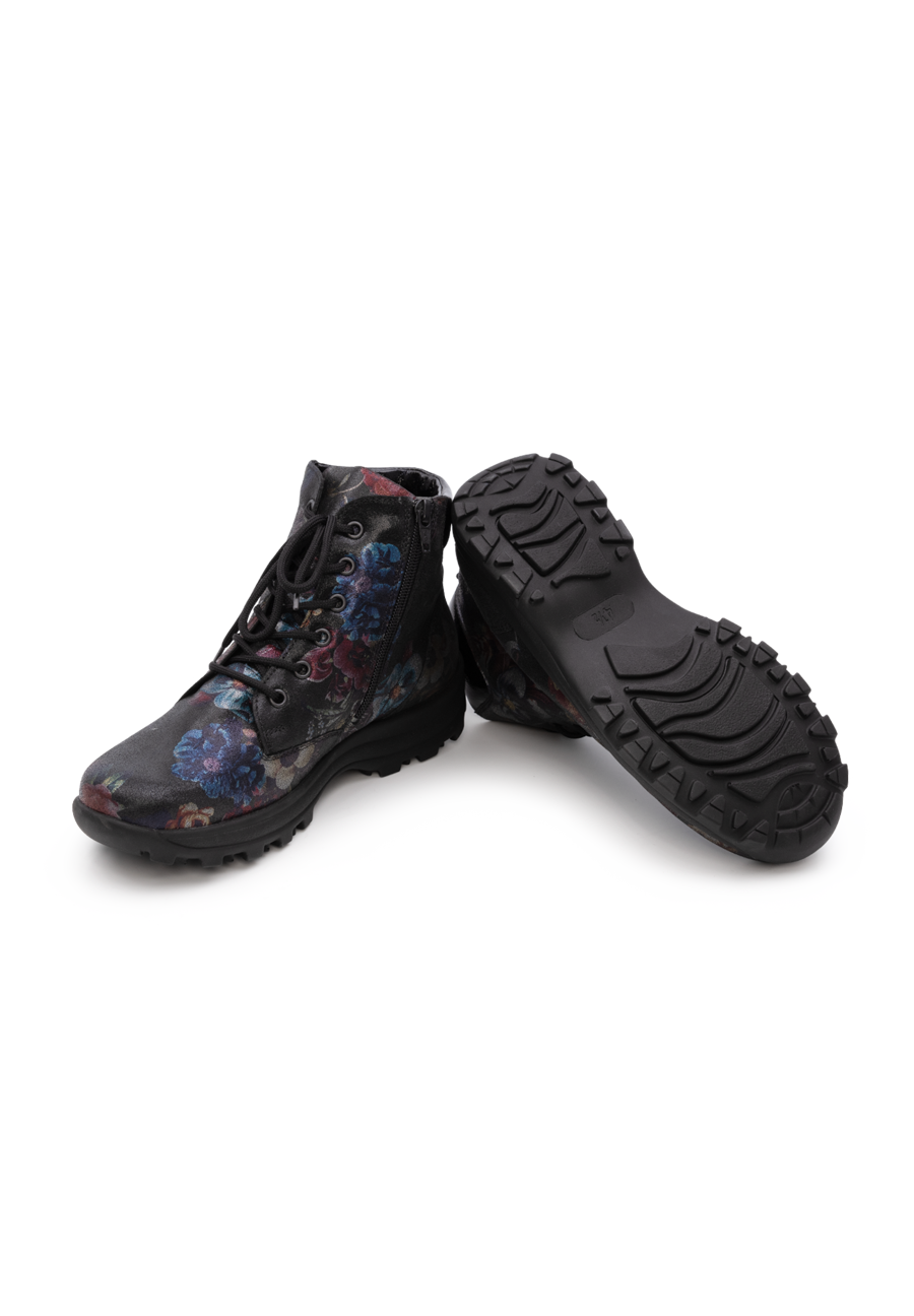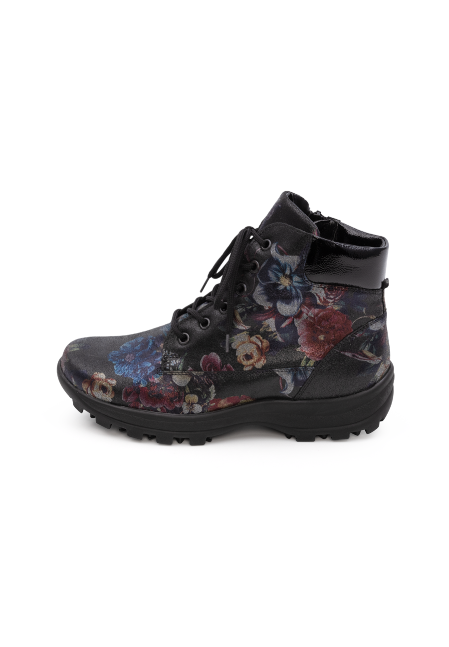 Erklimmen Sie nicht nur Höhenmeter... der Fashiongipfel wartet auf Sie! Die schönsten Bergtouren und Wanderwege (oder auch ausgedehnte Spaziergänge, die zählen auch) meistern Sie mit der sportlich-trendigen VITAFORM-Trekkingstiefelette aus weichem Premium-Veloursleder. Die Stiefelette sorgt nämlich jederzeit für die absolut schönste Aussicht: Der modische florale Print macht selbst den schönsten Blumen am Wegrand größte Konkurrenz! Die rutschhemmende Sohle und der hohe Schaft sorgen für maximale Stabilität und Sicherheit.