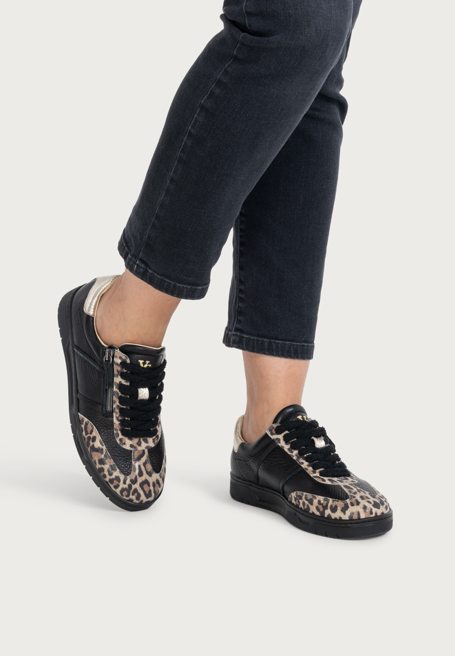 Dieser stilvolle VITAFORM Sneaker begleitet Sie souverän durch Ihren Tag – ob beim Einkauf, im Büro oder Stadtbummel. Gefertigt aus besonders weichem Hirschleder schmiegt sich der Schuh sanft an den Fuß und bietet luxuriöses Tragegefühl. Die modische Leo-Musterung aus feinem Veloursleder an der Fußspitze setzt ein Statement, während die goldfarbene Ferse stilvollen Akzent verleiht. Innen sorgt ein chromfreies, herausnehmbares Komfortfußbett mit integrierter Luftpolsterung für traumhaften Komfort. Zusätzlich schont der VITAFORM Shock-Absorber Ihre Gelenke. Ideal, wenn Sie viel auf den Beinen sind. Dank seitlichem Reißverschluss ist der Sneaker schnell an- und ausgezogen, ohne auf perfekten Sitz zu verzichten und bietet zudem verstellbare Passform, falls Ihre Füße mehr Raum brauchen! Ein besonderes Highlight: die flauschigen Teddy-Schnürsenkel, die dem sportlich-eleganten Look kuschelige Note verleihen. Ein Sneaker für Frauen, die keine Kompromisse eingehen – beim Stil und Komfort.