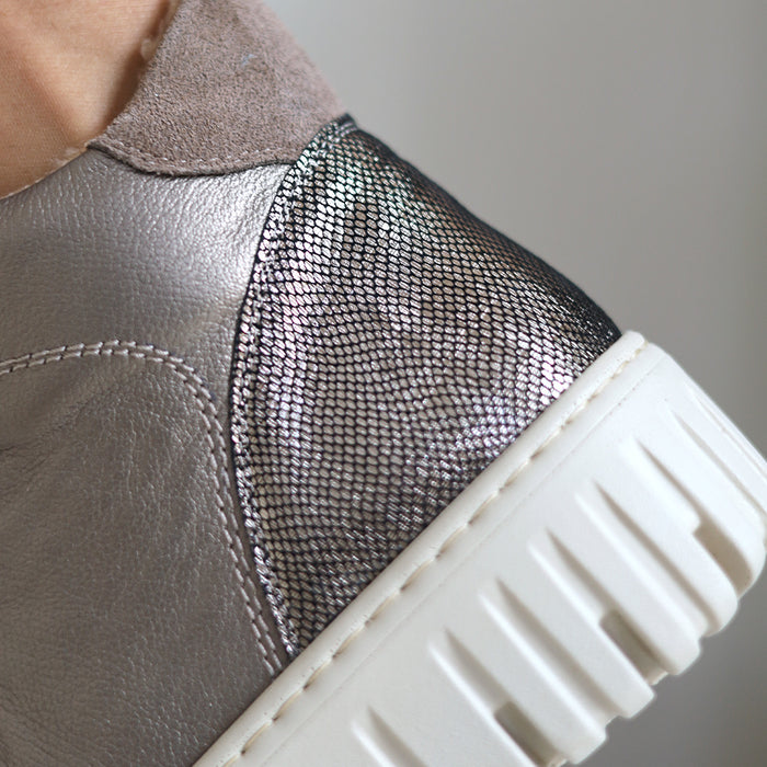 Glänzen Sie mit Stil und genießen Sie zugleich höchsten Komfort. Unser edles Nappaleder mit sanft schimmernder Metallic-Optik verleiht diesem Schuh eine elegante Note, ohne dabei an Weichheit oder Flexibilität zu verlieren. Das hochwertige Material schmiegt sich angenehm an den Fuß an und sorgt für ein geschmeidiges Tragegefühl den ganzen Tag über. So verbinden sich bei VITAFORM Eleganz und Bequemlichkeit auf ganz natürliche Weise.
