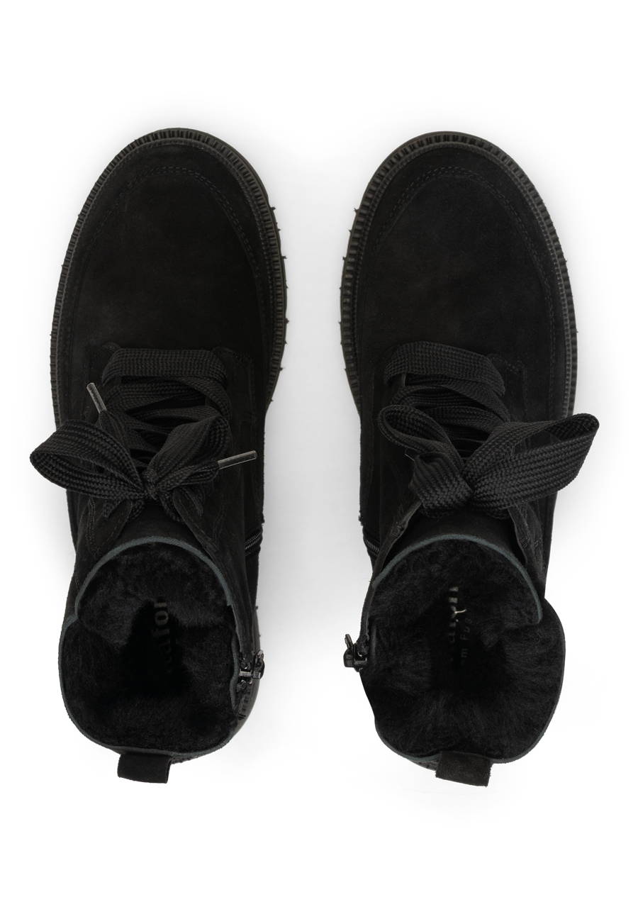 Die VITAFORM Damen-Stiefelette aus Doubleface-Veloursleder ist ein echtes Highlight für die kalte Jahreszeit. Außen verleiht das samtige Veloursleder eine edle, stilvolle Optik, während die kuschelige Doubleface-Fütterung im Inneren Ihre Füße angenehm warm hält – perfekt auch an frostigen Tagen. Dank Komfortweite H bietet der Schuh ausreichend Platz, selbst bei kräftigeren Füßen oder empfindlichen Problemzonen. Das austauschbare Fleecefußbett mit integrierter Luftpolsterung schenkt spürbare Entlastung für Gelenke und Rücken und macht jeden Schritt besonders weich. Praktische Reißverschlüsse erleichtern den Einstieg zusätzlich, sodass Sie bequem hineinschlüpfen können. Mit dieser Stiefelette genießen Sie eine harmonische Verbindung aus Komfort, Wärme und modischem Chic – der ideale Begleiter für Herbst und Winter.