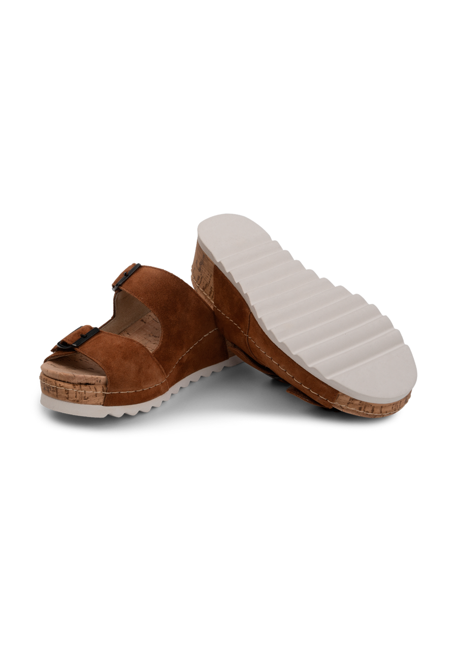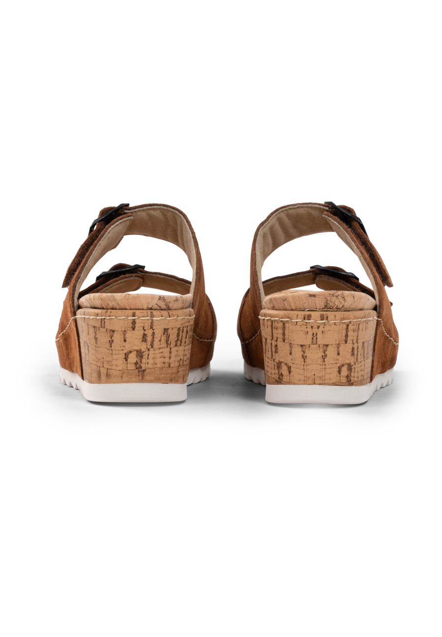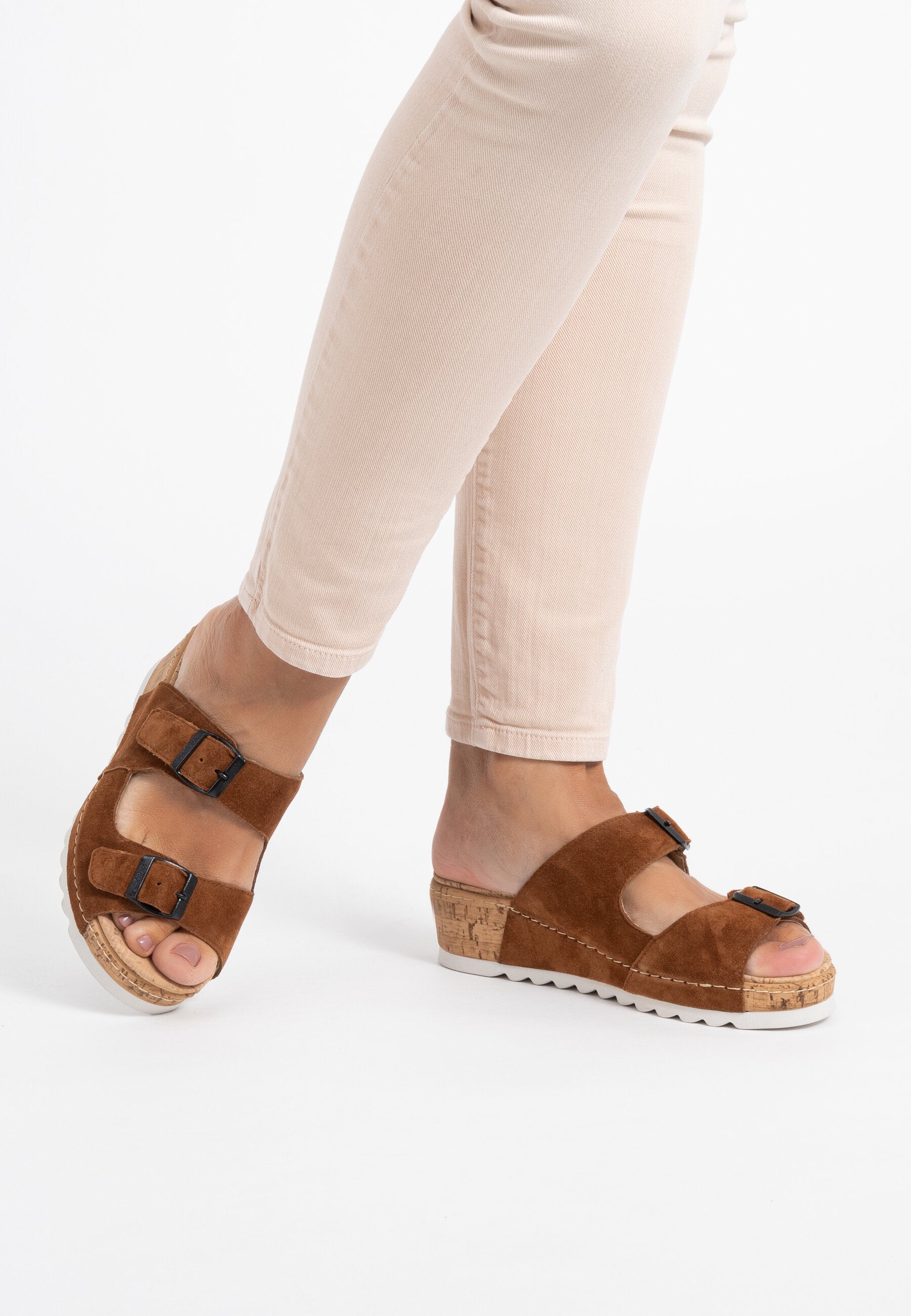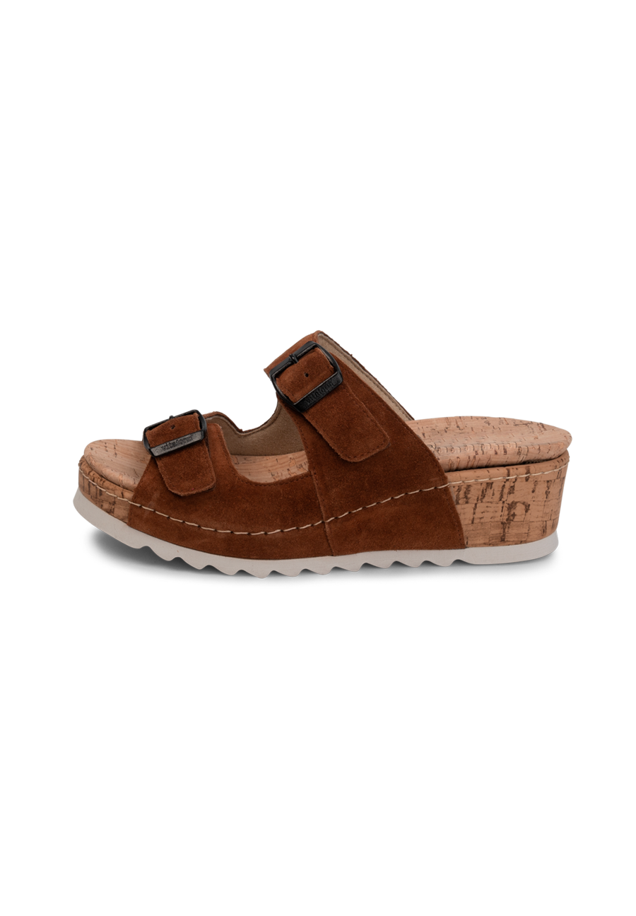 Kork ist der Hit! Und wir nutzen hier die Optik für eine wunderschöne VITAFORM Pantolette! Die Töne Fuchsia und Cognac harmonieren herrlich mit der Korkoptik und das weiche Veloursleder ist angenehm auf nackter Haut. Der kleine Keilabsatz in Kork-Optik (flexibel, robust, pflegeleicht) streckt das Bein und sieht fein feminin aus. Und auch wenn die Riemchen hier Schnalle zeigen – hinter ihnen steckt ein praktischer Klettverschluss. Das alles macht diese Pantolette zu einem Allrounder für viele Gelegenheiten: als sommerlicher Schuh zu Hose oder Kleid oder als schöne gemütliche Schlappe für Haus und Freizeit. Und pssst: das Fußbett ist sogar austauschbar!