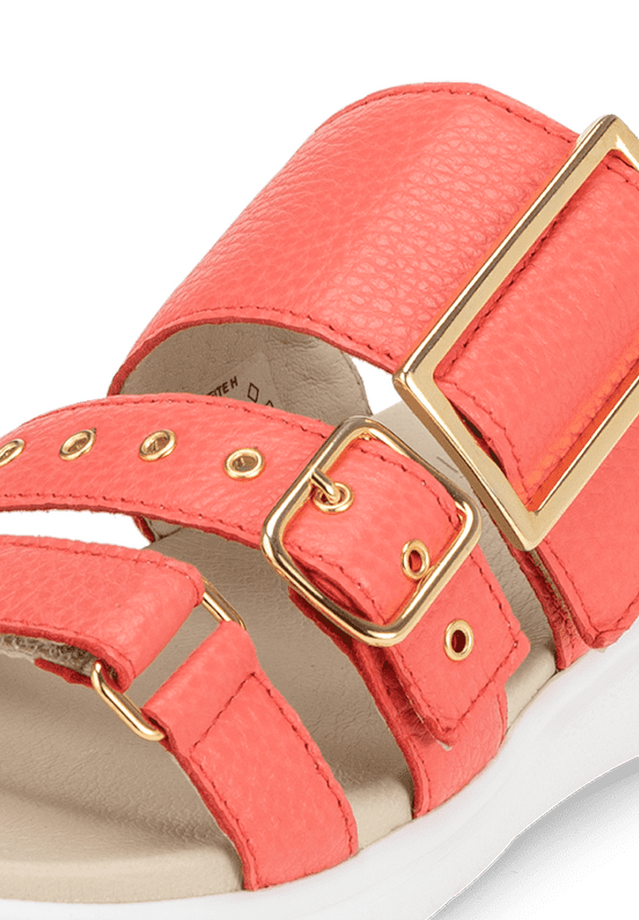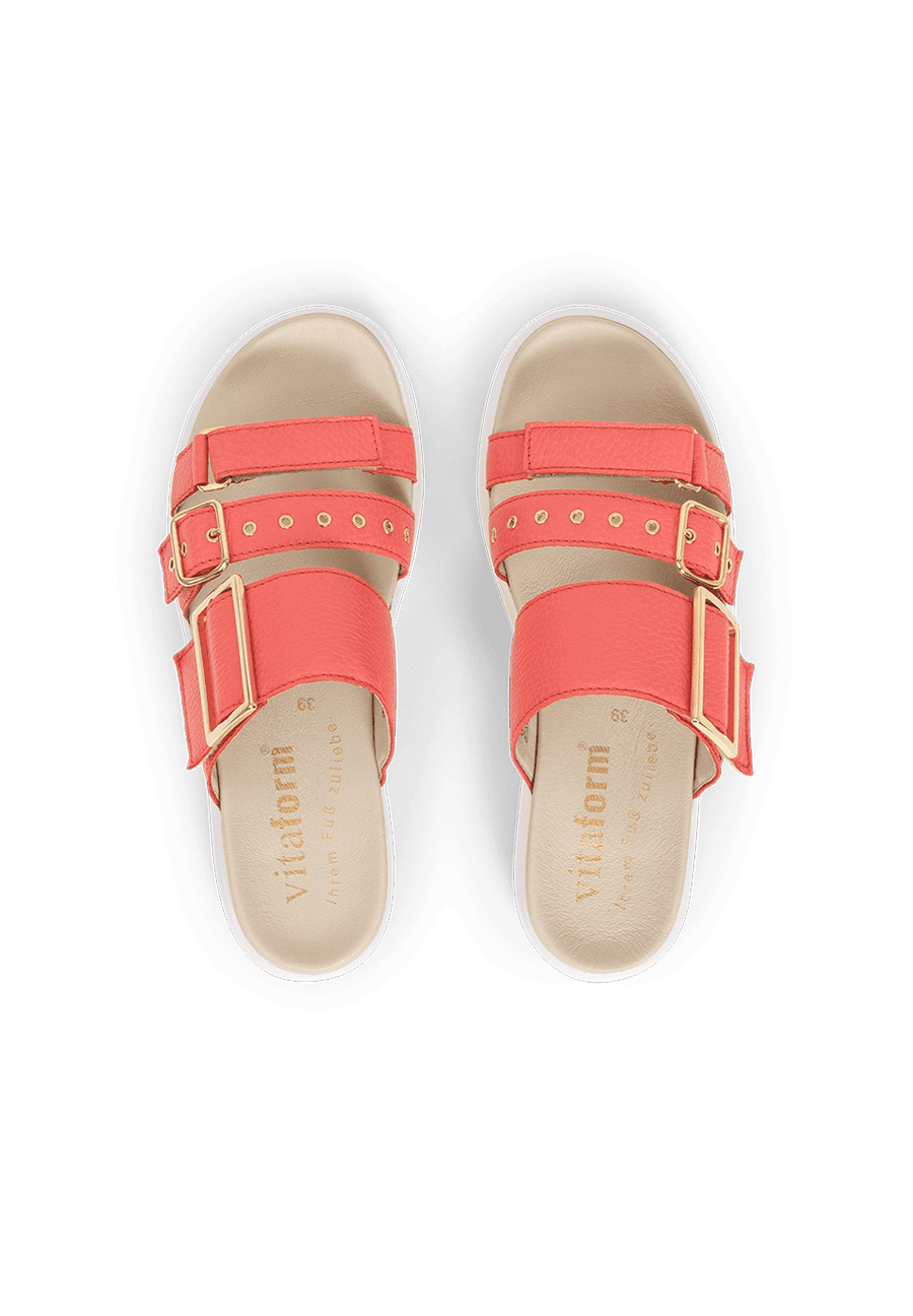 Aller schönen Dinge sind drei. Diese Pantolette spielt mit einem Trio aus verschiedenen Riemen und Riemchen und kreiert eine spannende, moderne Kombi. Mal breit mit großer goldener Schnalle. Mal farbig abgesetzt mit goldener Schließe und Nieten. Mal schmal und Ton-in-Ton. Das sieht gut aus und passt sich dreifach gut Ihrem Fuß an. Stellen Sie alles perfekt für sich ein und freuen Sie sich auf ein entspanntes Fußgefühl. Dank der Farbauswahl ist auf Wunsch in jedem Fall für einen Glamourfaktor gesorgt. Der richtige Schuh also für die laue Sommernacht, mit gebräunter Haut oder einfach für einen gemütlichen Tag zu Hause. Bequem ist er so oder so: die Fütterung mit echtem Leder macht das Barfuß-Hineinschlüpfen zu genauso einem Vergnügen wie das Gehen auf dem Komfortfußbett mit Luftpolster.