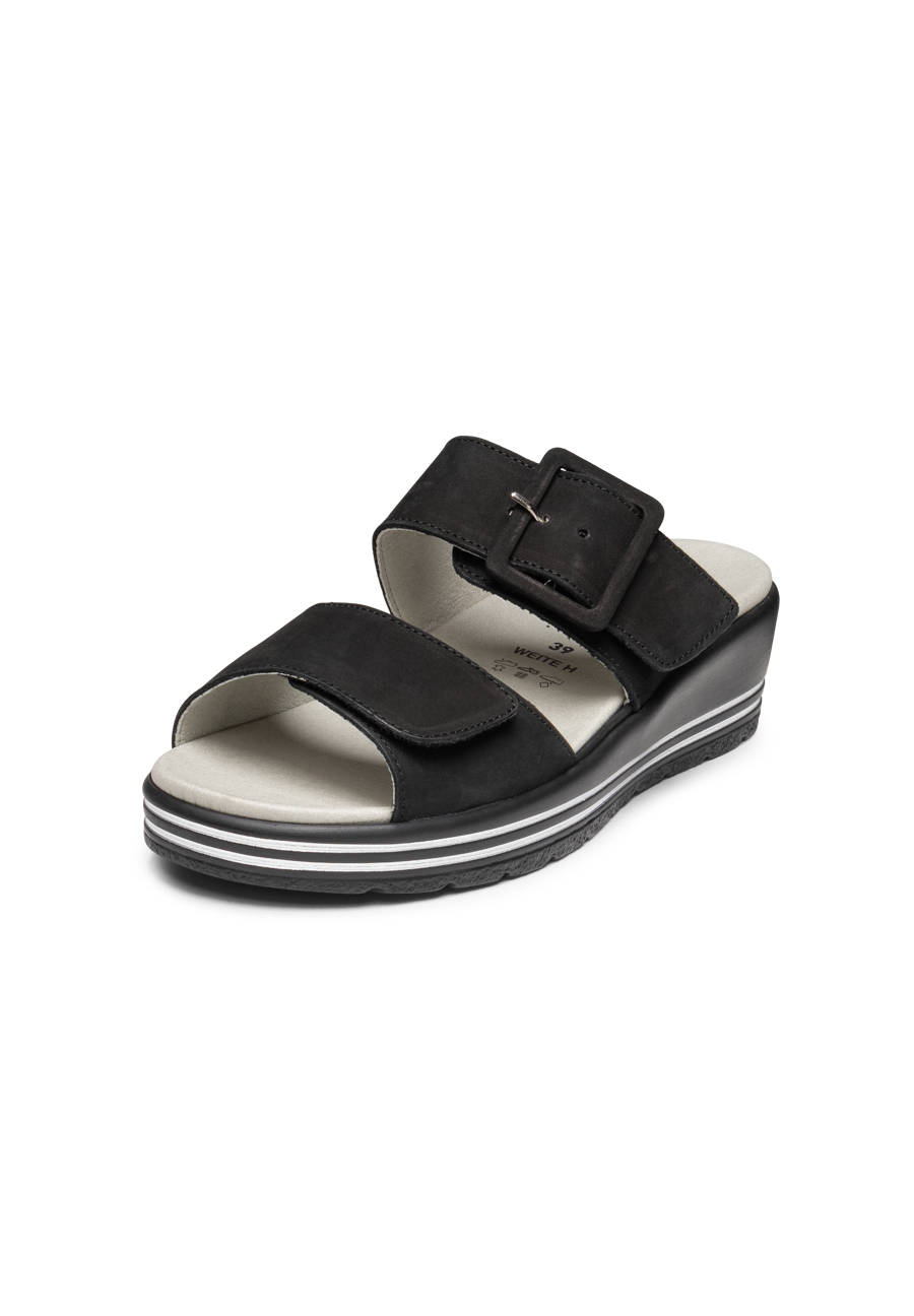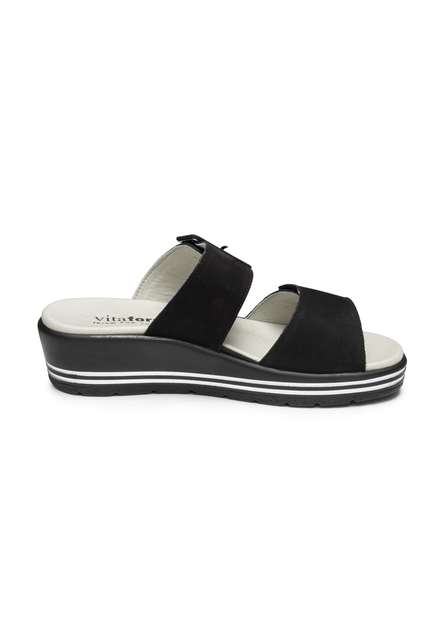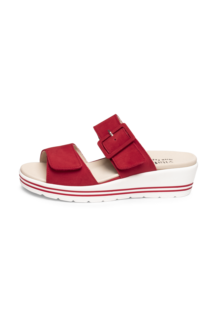 Erleben Sie den ultimativen Komfort und Stil mit unserer VITAFORM Pantolette aus edlem Softnubukleder. Diese exklusive Pantolette vereint luxuriöses Design mit erstklassiger Funktionalität. Die große, elegante Dornschließe und der praktische Klettverschluss ermöglichen eine individuelle Anpassung und sorgen für einen perfekten Sitz. Das integrierte Vakuumluftpolsterfußbett bietet eine unvergleichliche Polsterung und Druckverteilung, wodurch jeder Schritt sanft abgefedert wird und Ihre Fußsohlen optimal unterstützt werden. Genießen Sie ein Laufgefühl wie auf Wolken, während die rutschhemmende Sohle für sicheren Halt auf verschiedenen Oberflächen sorgt. Diese Pantolette ist die ideale Wahl für alle, die Wert auf höchsten Komfort und stilvolles Design legen.