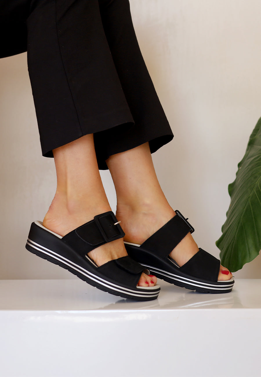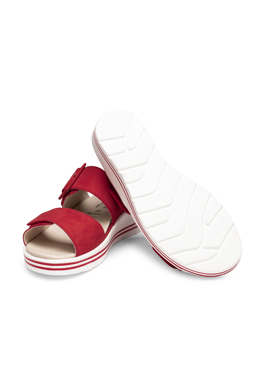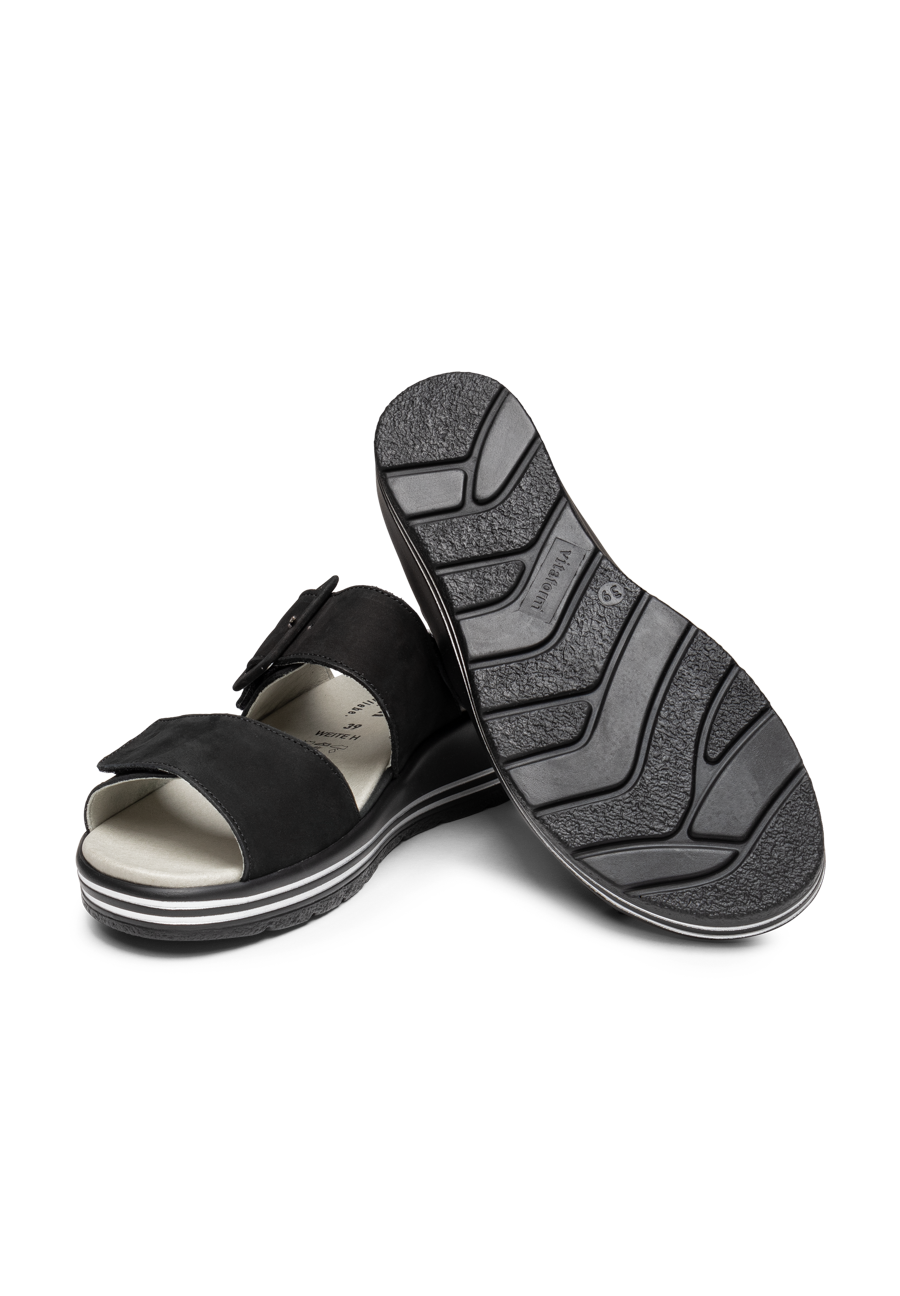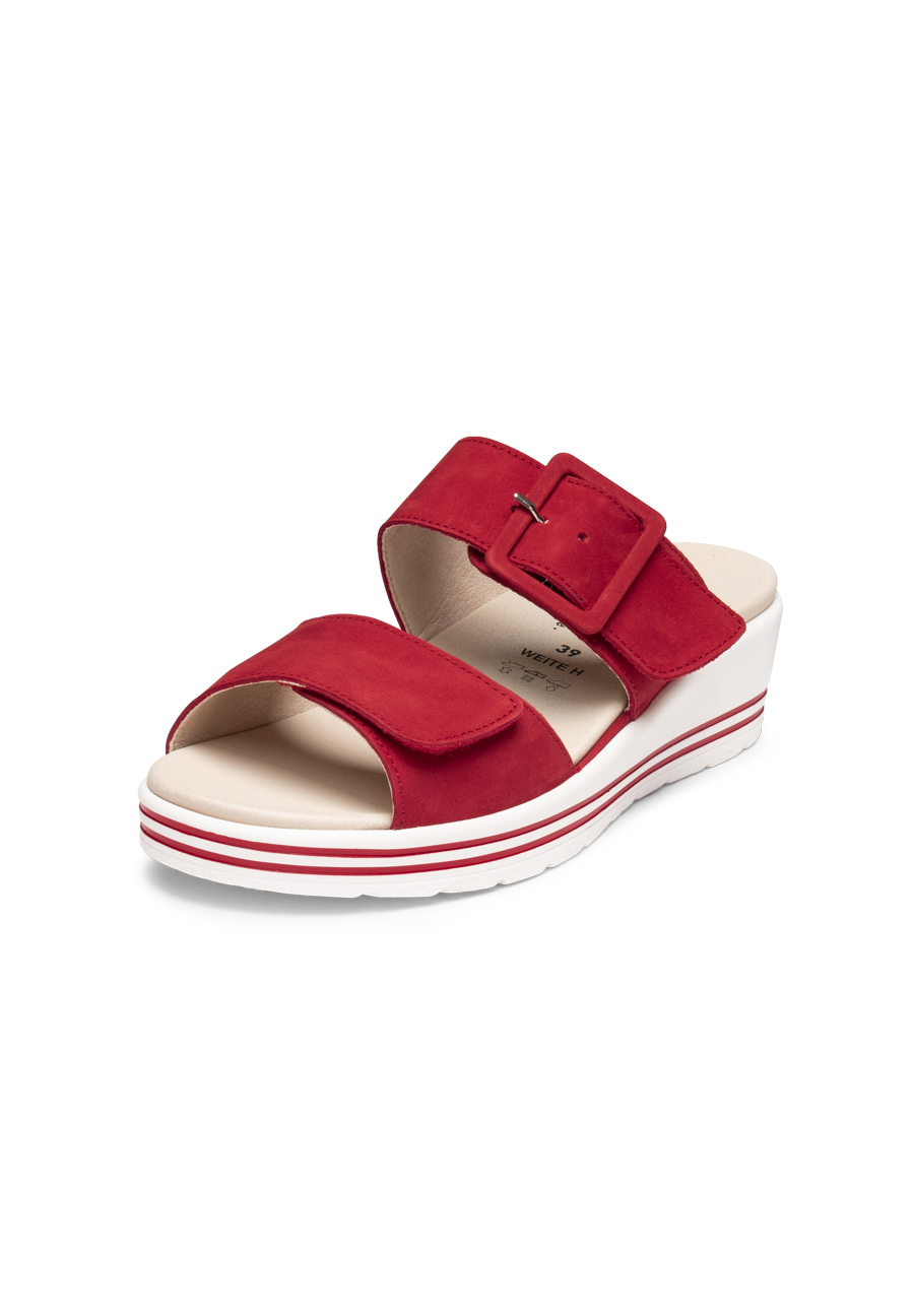 Erleben Sie den ultimativen Komfort und Stil mit unserer VITAFORM Pantolette aus edlem Softnubukleder. Diese exklusive Pantolette vereint luxuriöses Design mit erstklassiger Funktionalität. Die große, elegante Dornschließe und der praktische Klettverschluss ermöglichen eine individuelle Anpassung und sorgen für einen perfekten Sitz. Das integrierte Vakuumluftpolsterfußbett bietet eine unvergleichliche Polsterung und Druckverteilung, wodurch jeder Schritt sanft abgefedert wird und Ihre Fußsohlen optimal unterstützt werden. Genießen Sie ein Laufgefühl wie auf Wolken, während die rutschhemmende Sohle für sicheren Halt auf verschiedenen Oberflächen sorgt. Diese Pantolette ist die ideale Wahl für alle, die Wert auf höchsten Komfort und stilvolles Design legen.
