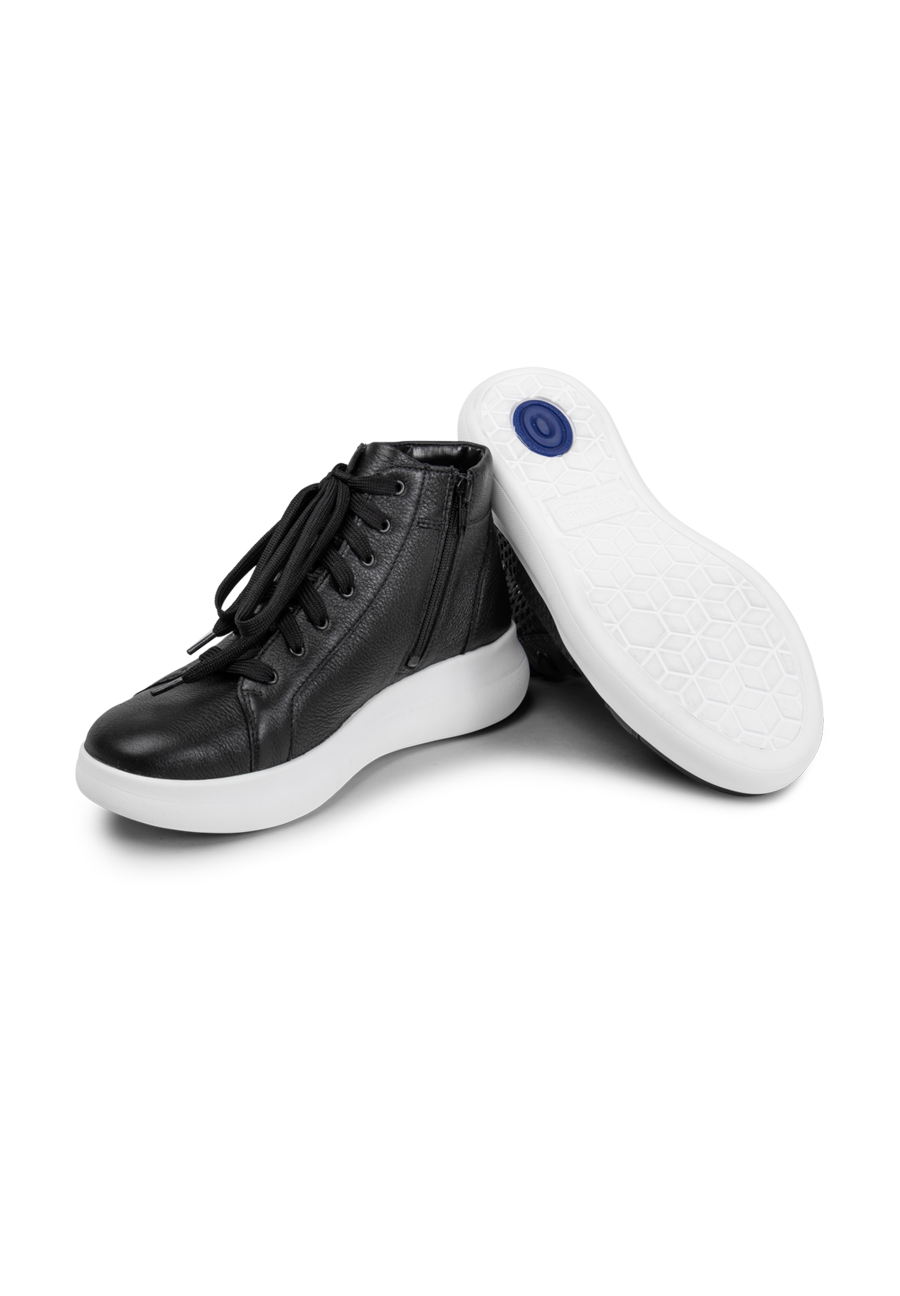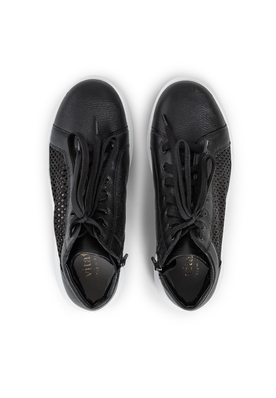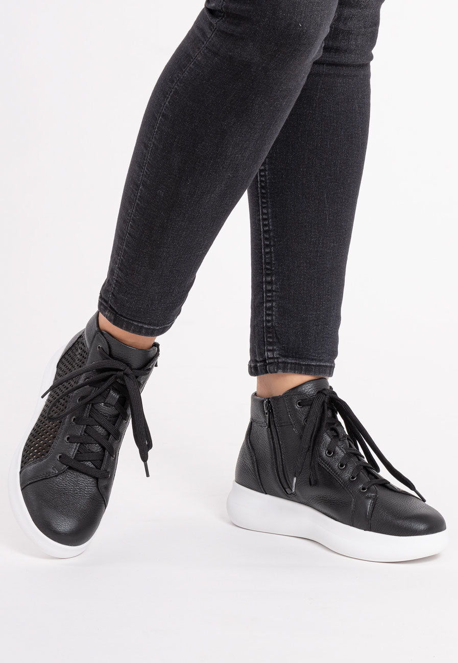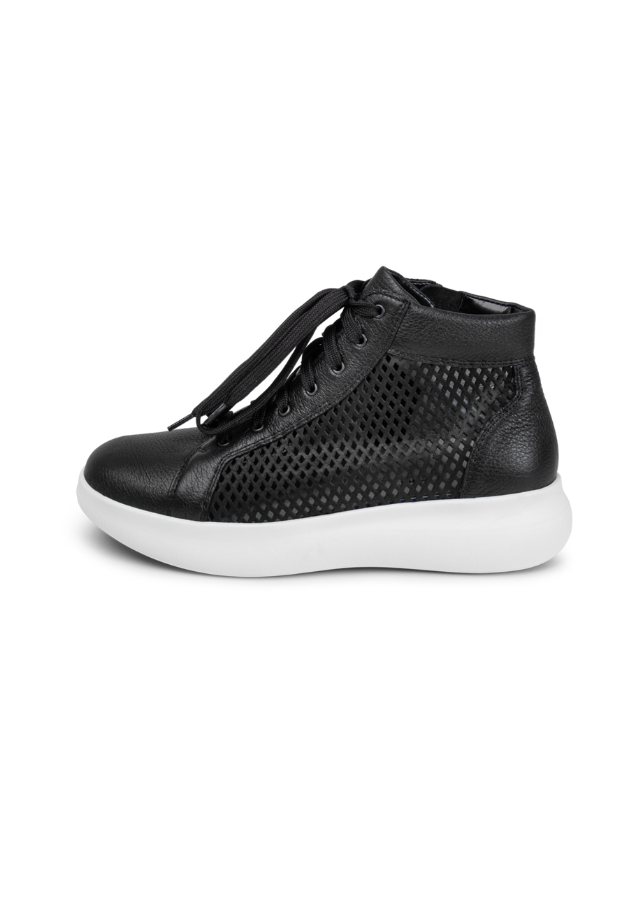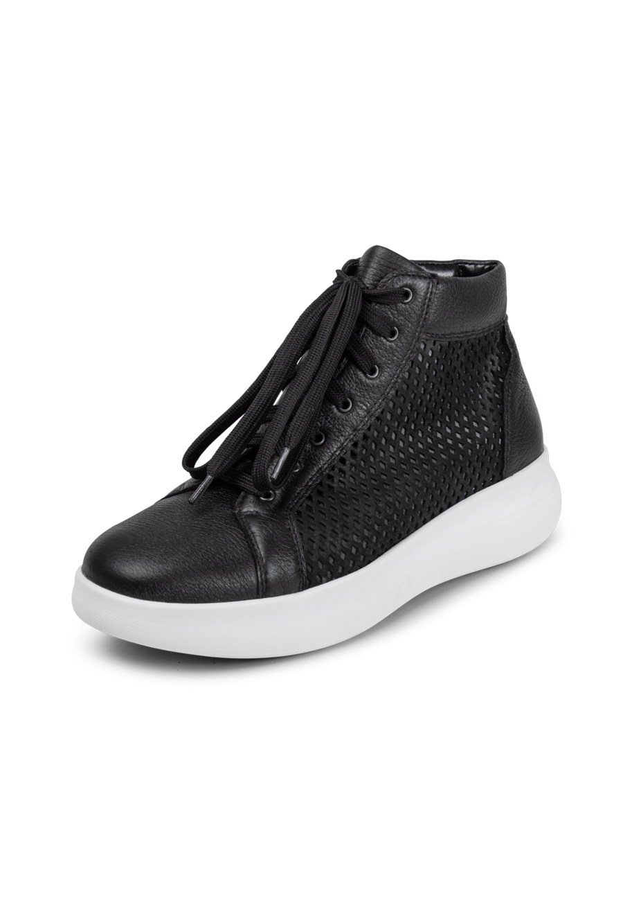 So luftig können Sneaker sein: Die Perforation macht es möglich! Das sportliche Muster auf den Seiten veredelt die minimalistischen Hightops und unterstreicht ihren angesagten Retro-Stil. Ob in Schwarz oder Weiß – die Sneakers lassen sich zu fast allem lässig kombinieren, ob Hose, Rock, ob sportlich, romantisch oder auch mal klassisch fürs Business. Schnell hineinschlüpfen statt lange schnüren! Dass das auch mit einem hohen Schuh geht, beweist der zusätzliche Reißverschluss. Und bequem macht der Sneaker es Ihnen innen: das extra Luftpolster ist mit Leder bezogen. Zusammen mit dem Shock-Absorber in der Sohle dämpft es jeden Auftritt ab. Kurzum: Retro Style trifft innovativen Komfort.