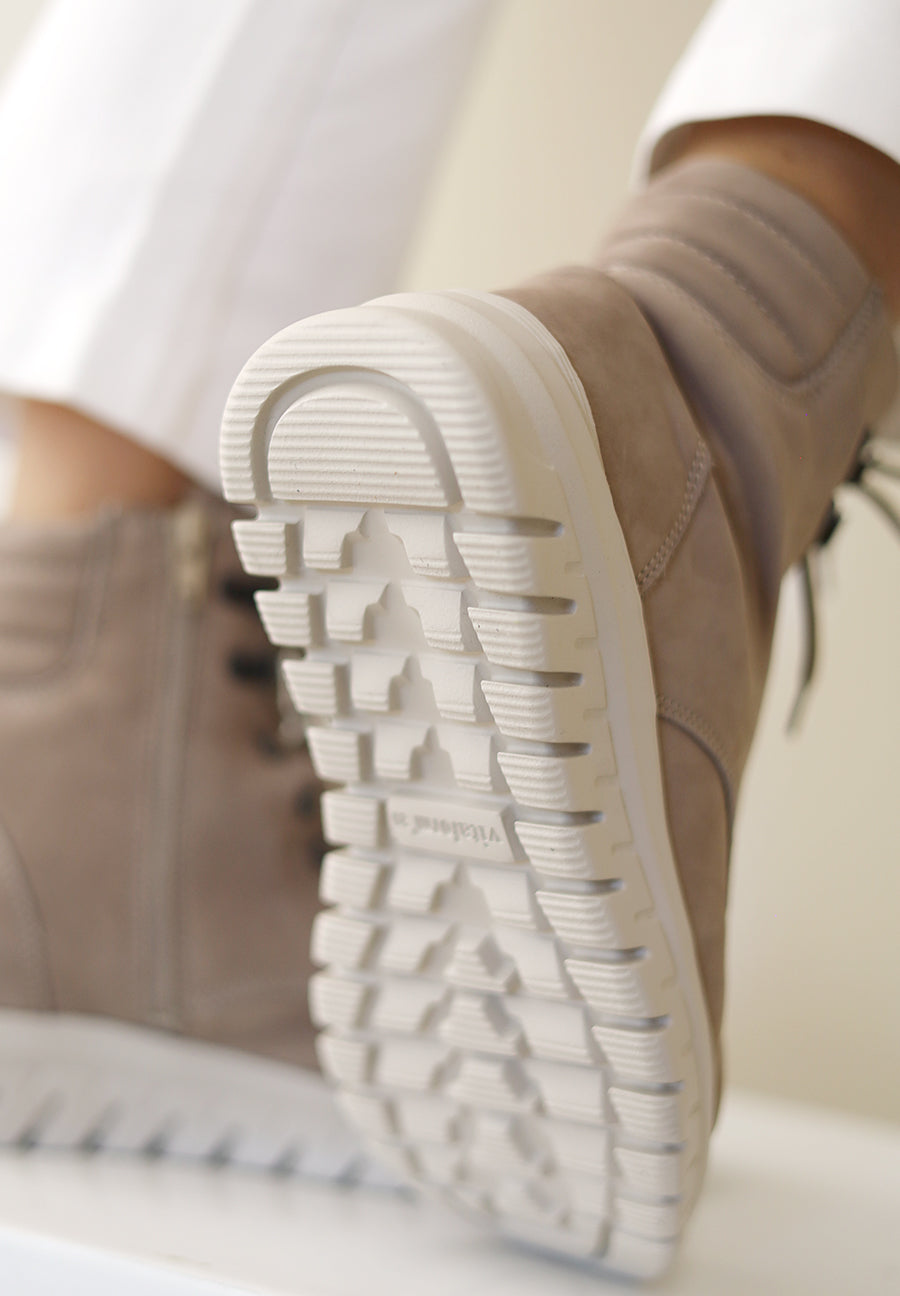 Diese modische VITAFORM Damen Stiefelette aus geschmeidigem Softnubukleder vereint stilvolles Design mit maximalem Tragekomfort und ist die perfekte Wahl für kühle Tage. Dank der Komfortweite H bietet sie ausreichend Platz für kräftigere Füße und sorgt so für ein entspanntes Tragegefühl, das nicht nur ideal bei Problemfüßen ist. Der praktische seitliche Reißverschluss ermöglicht ein bequemeres An- und Ausziehen und verschafft zusätzlichen Platz, während das herausnehmbare Fleecefußbett für wohlige Wärme und die Möglichkeit zur individuellen Anpassung sorgt. Die rutschhemmende Sohle gibt Sicherheit auf allen Untergründen und macht die Stiefelette zu einem vielseitigen Alltagsbegleiter. Sichern Sie sich dieses Modell, das Design, Komfort und Funktionalität perfekt in sich vereint und Ihre Füße bei jedem Schritt verwöhnt!