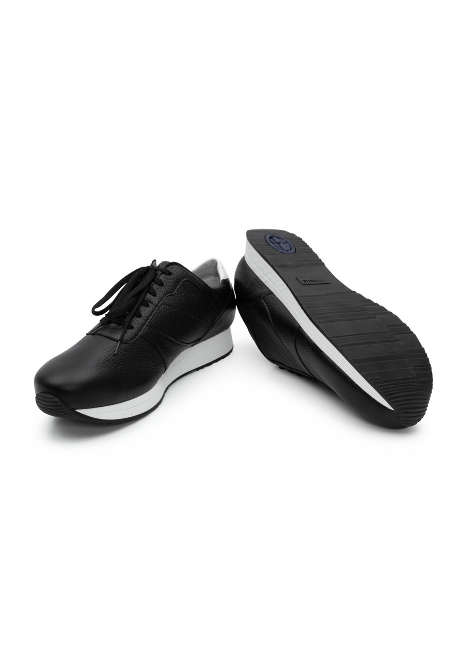 Unser schnittiger VITAFORM Herren-Sneaker überzeugt die Männerwelt durch absolute Vielseitigkeit und viel Pferdestärke unter der modischen Haube. Die sportliche, dynamische Optik und die echte luxuriöse Hirschlederverkleidung der Edel-Karosserie lässt die Herzen aller PS-Liebhaber in den Extrem-Bereich schlagen. Das Multitalent beherrscht vom schnellen Sport-Modus bis legere Spazierfahrt einfach alles und scheut sich sicherlich nicht vor der Darlegung seiner super-starken Ausstattungs-Eckdaten.